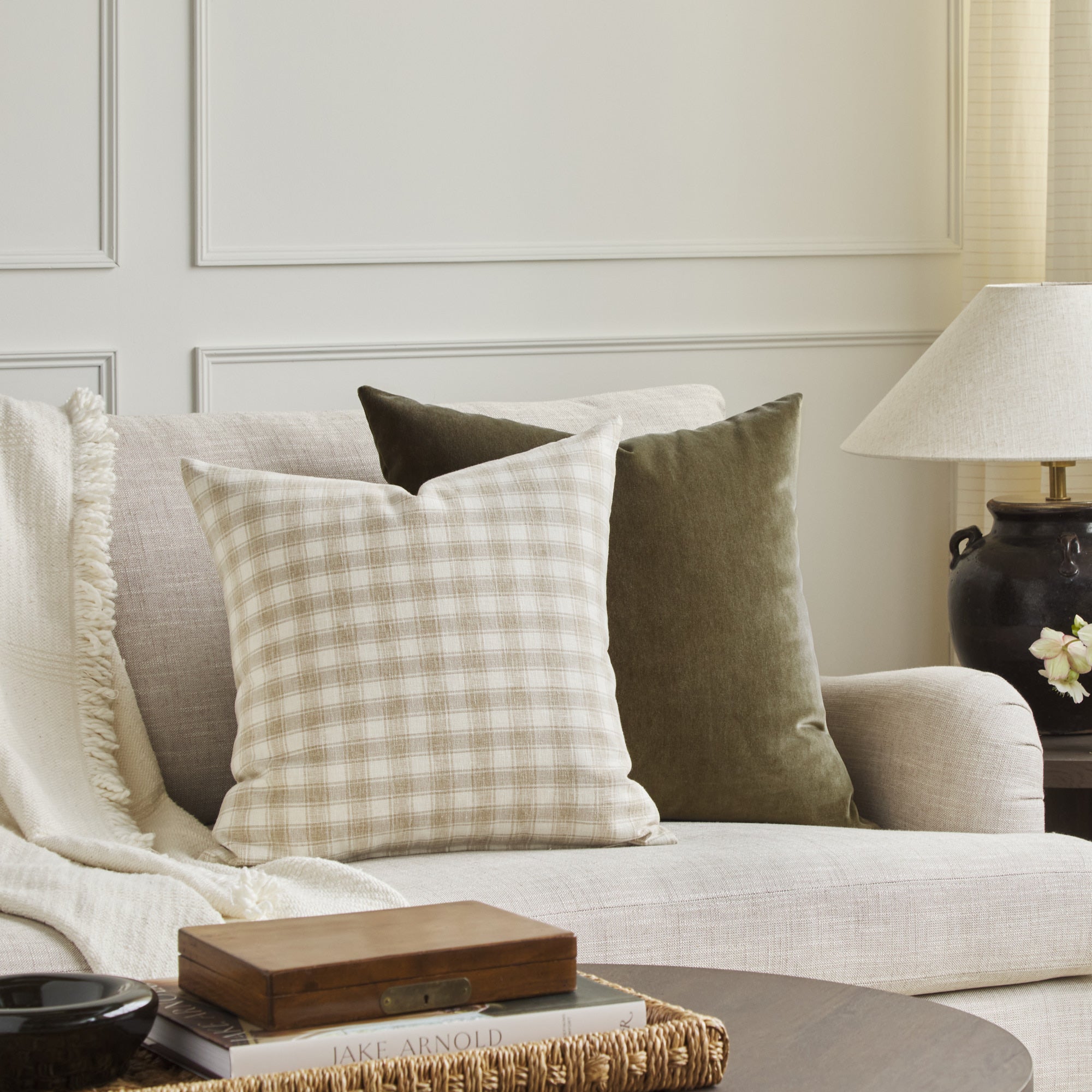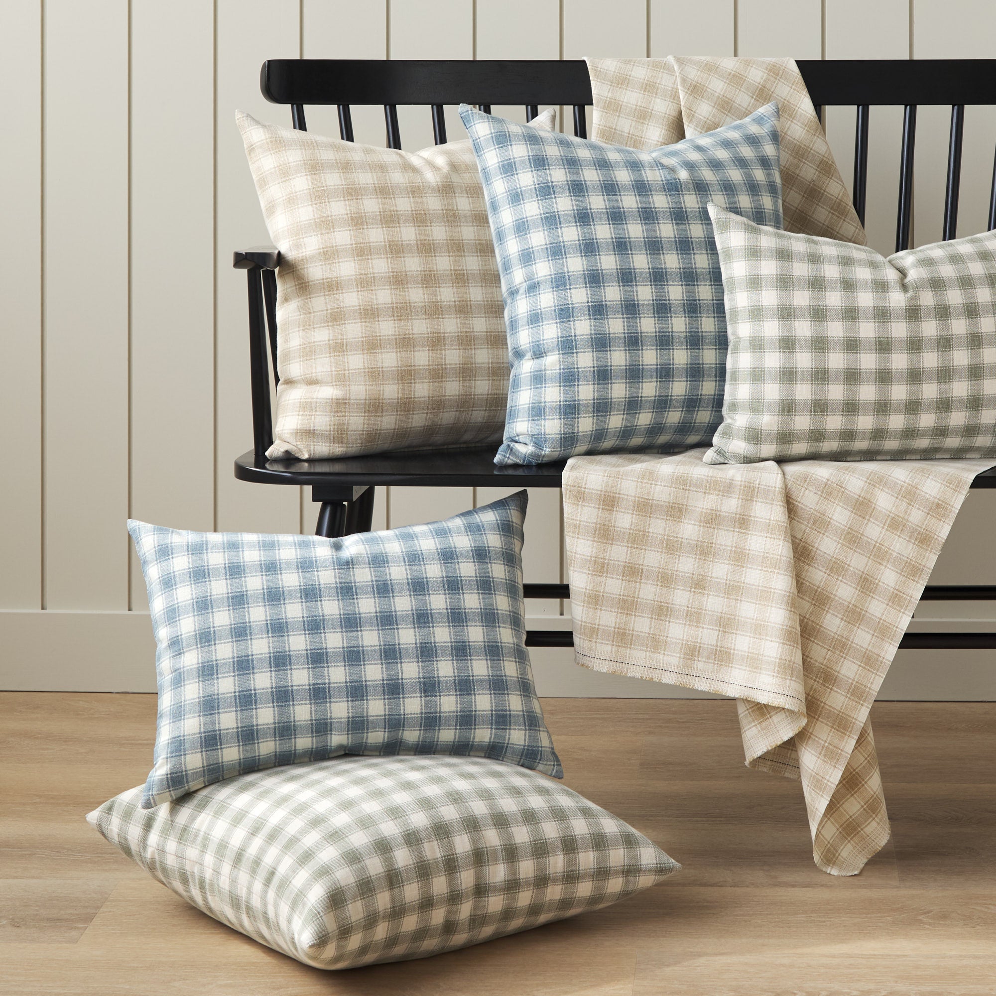 New fabric & pillows in a timeless small-scale plaid that feels both heritage-inspired and fresh.