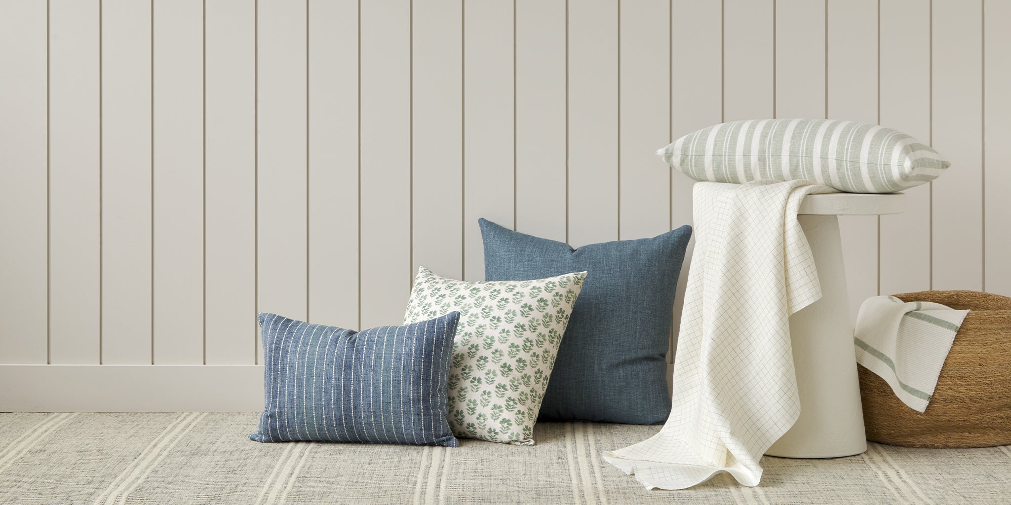 A fresh collection of fabrics and pillows designed to brighten your space with effortless colour, texture, and pattern.