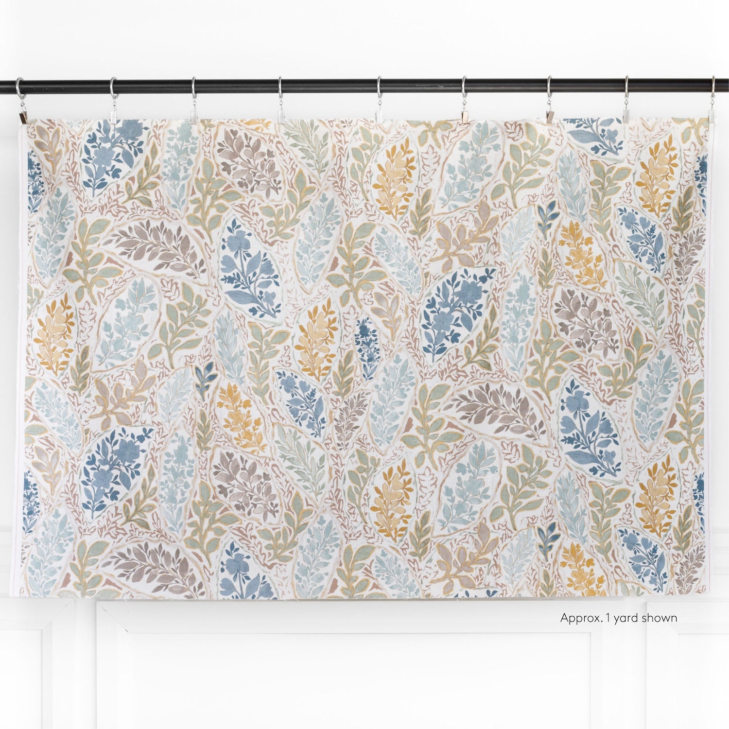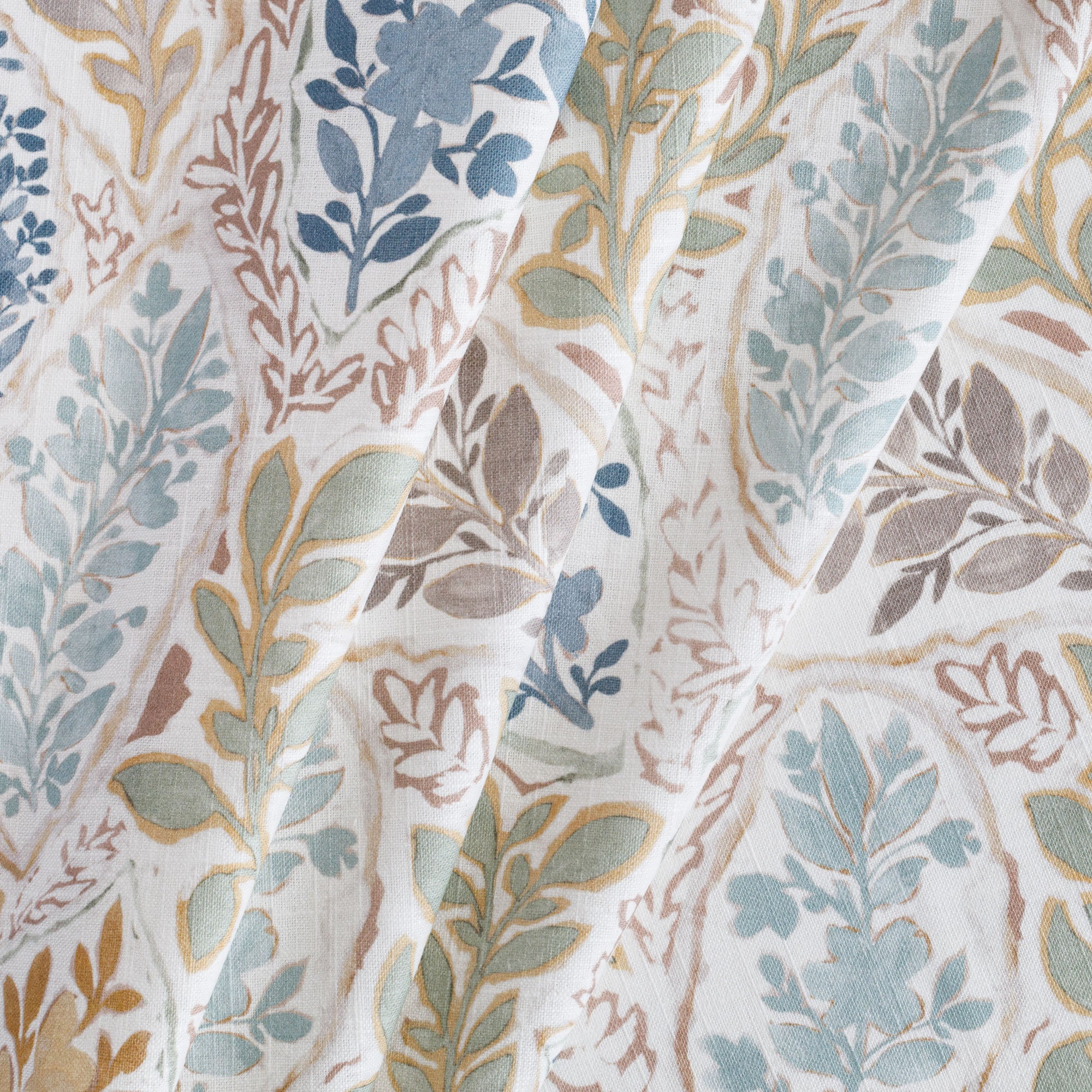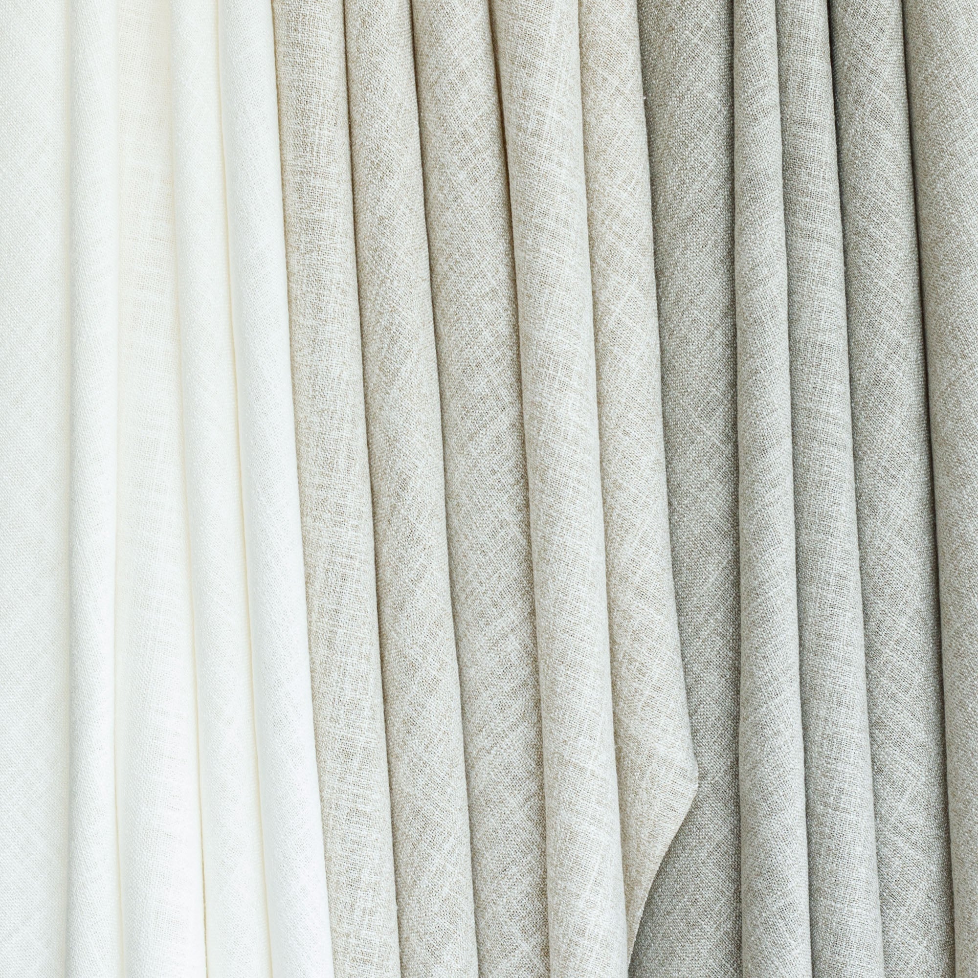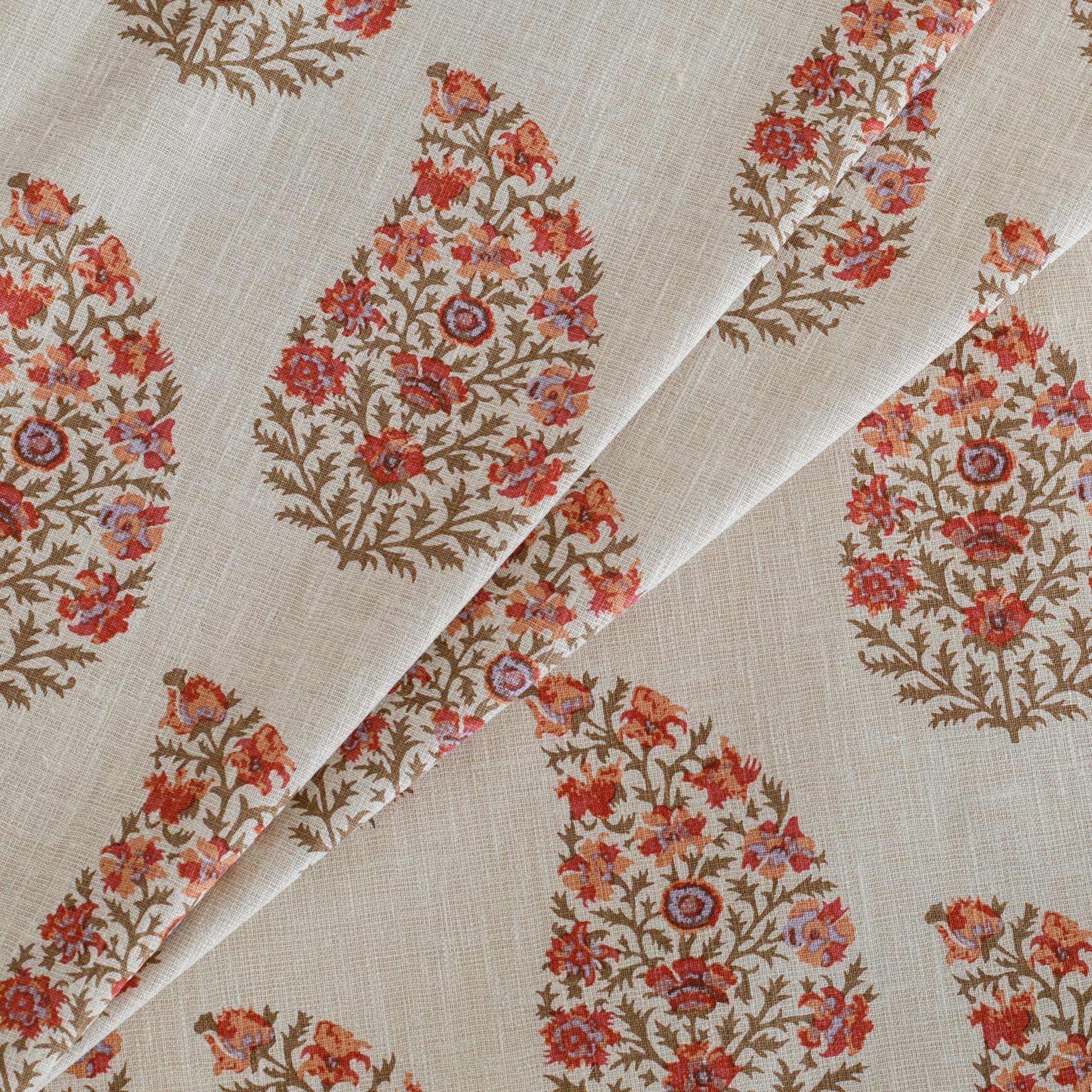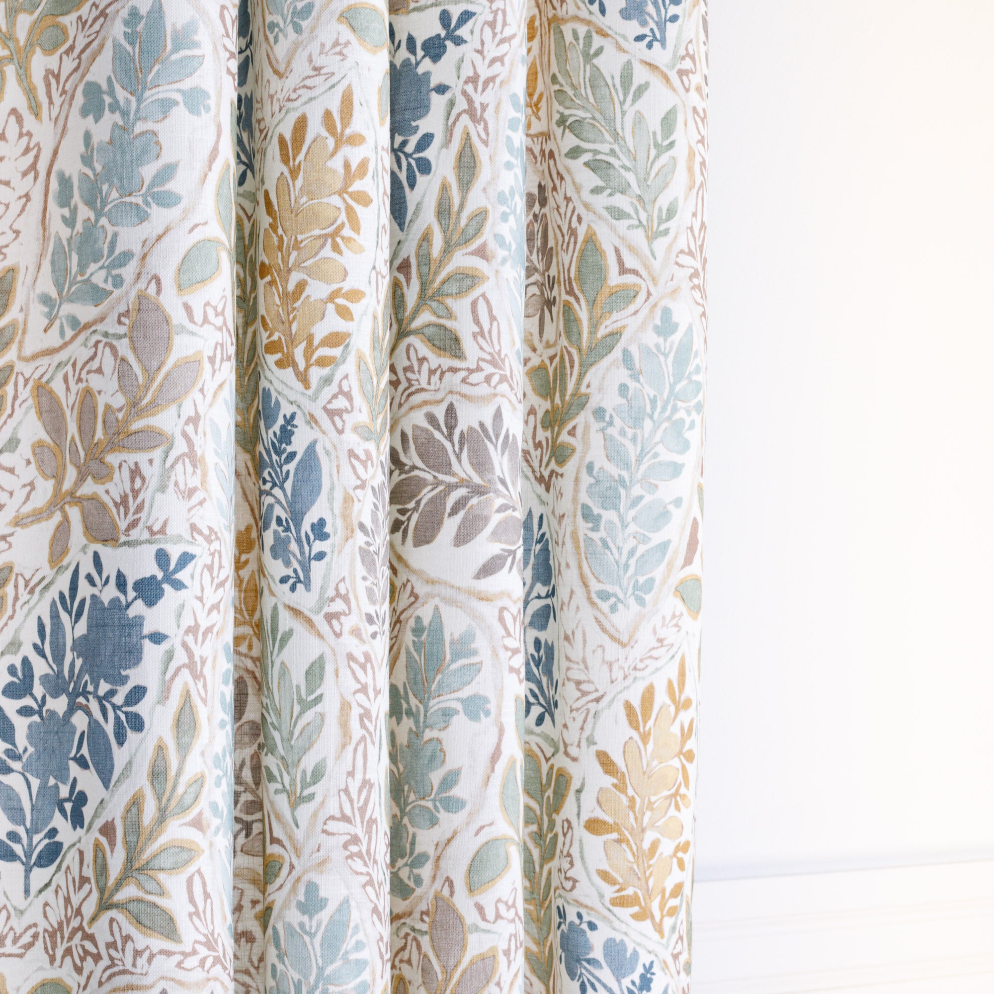 Linen-blend drapery fabrics that showcase a delicate petal block print in four beautiful colours.