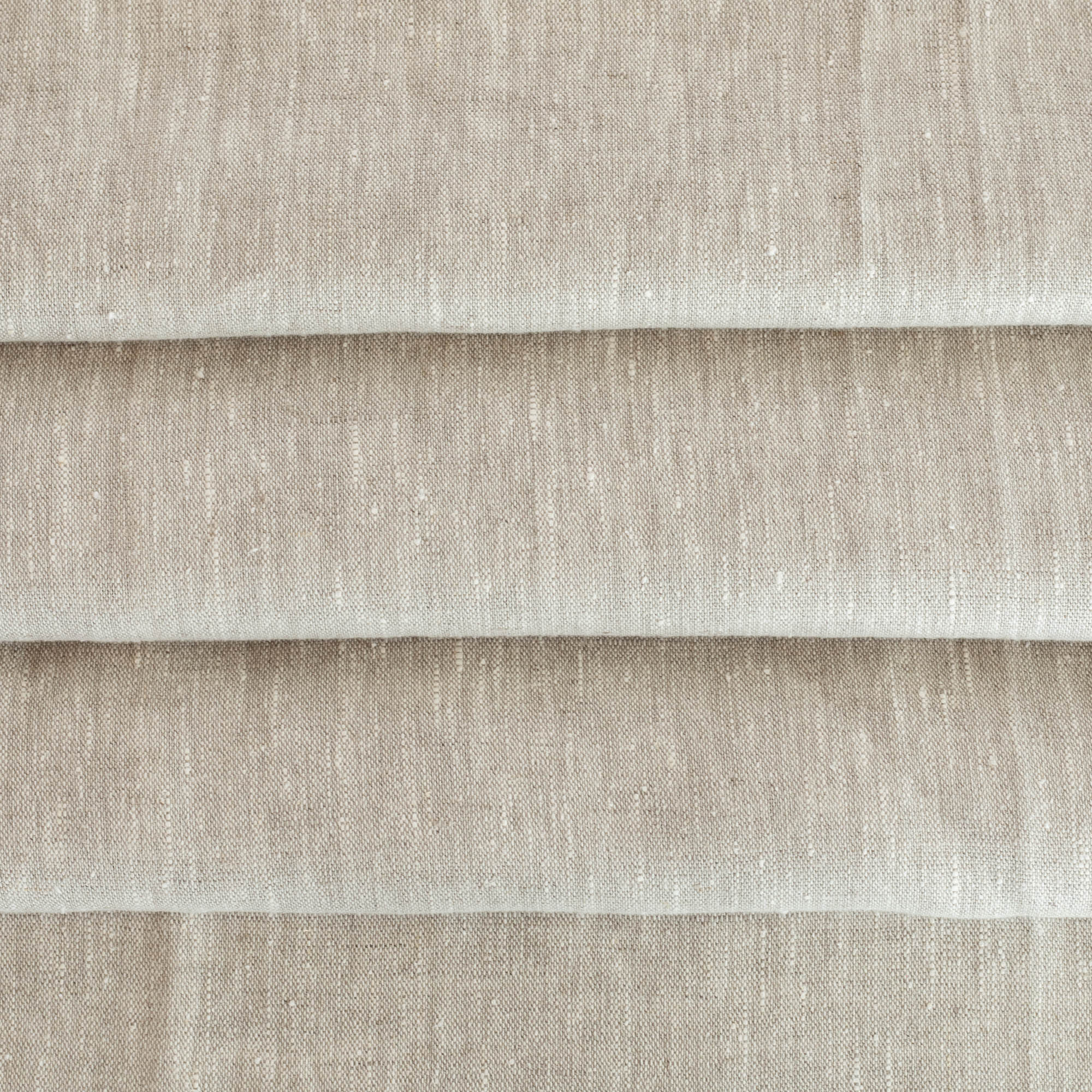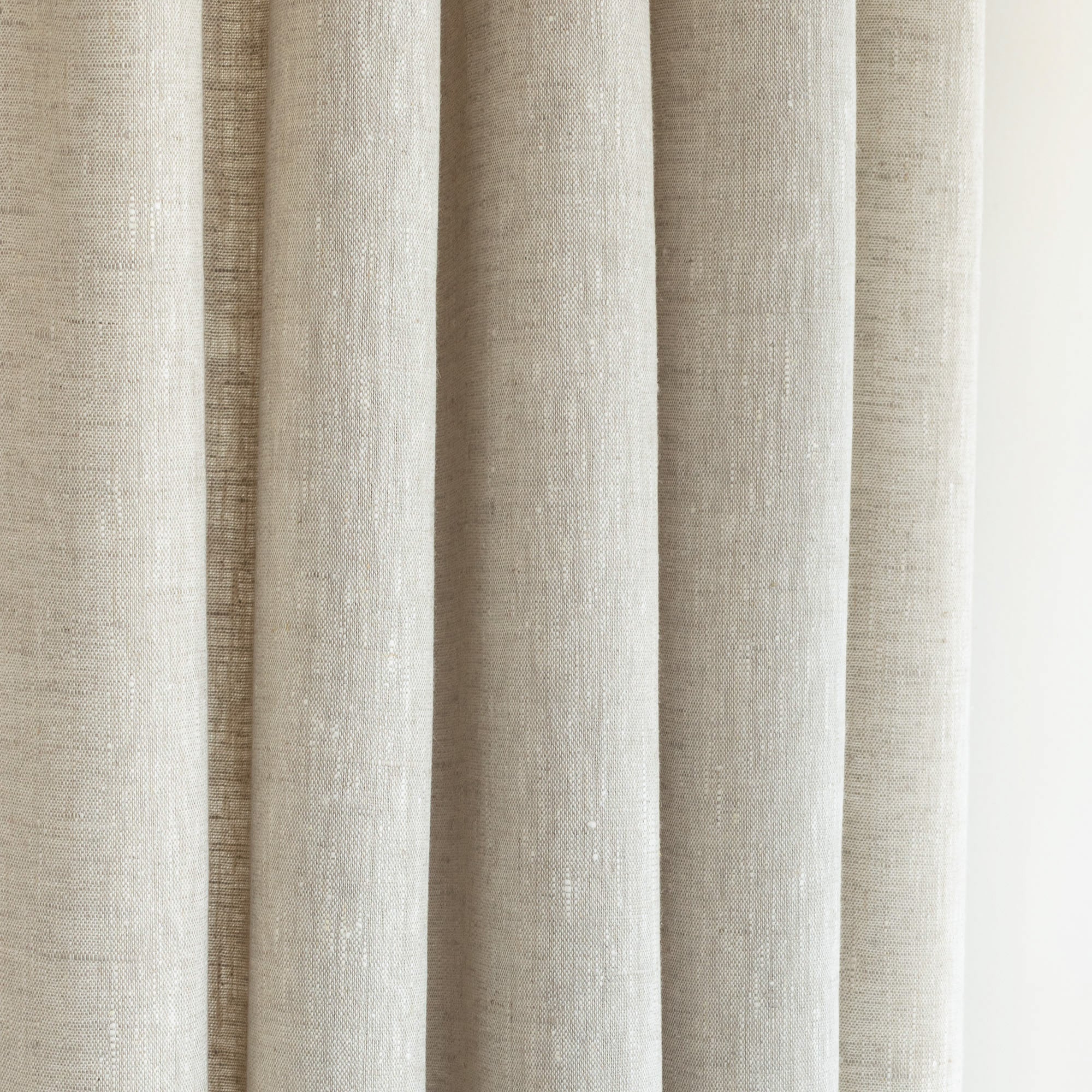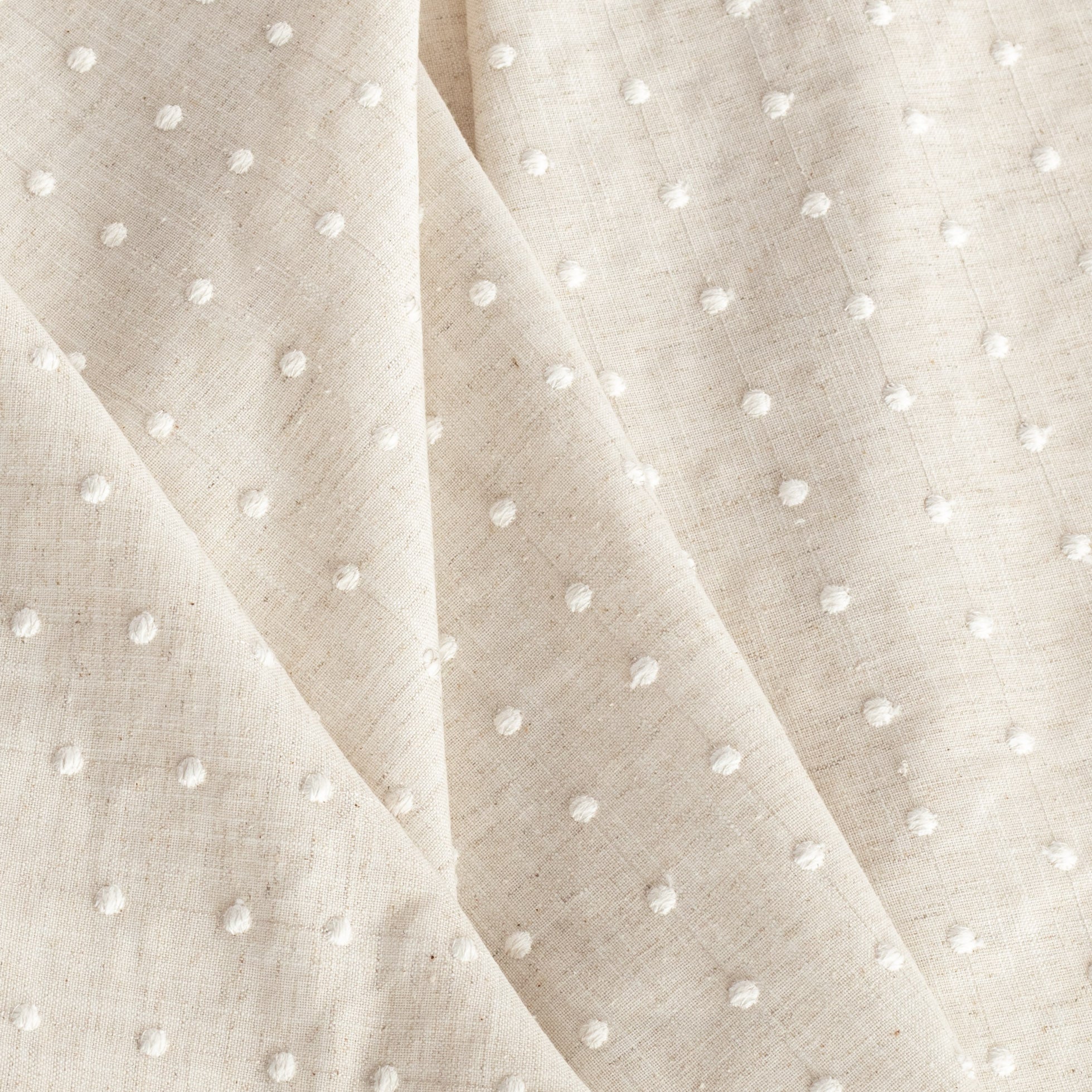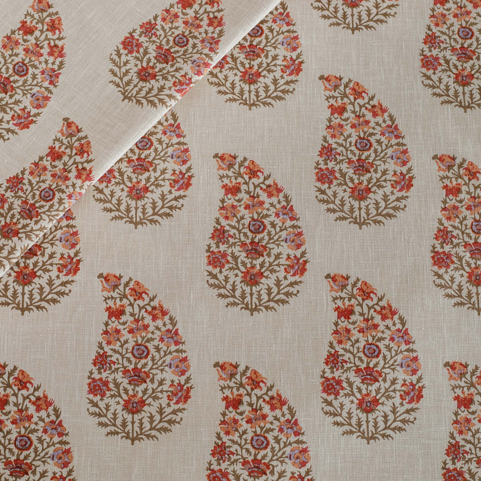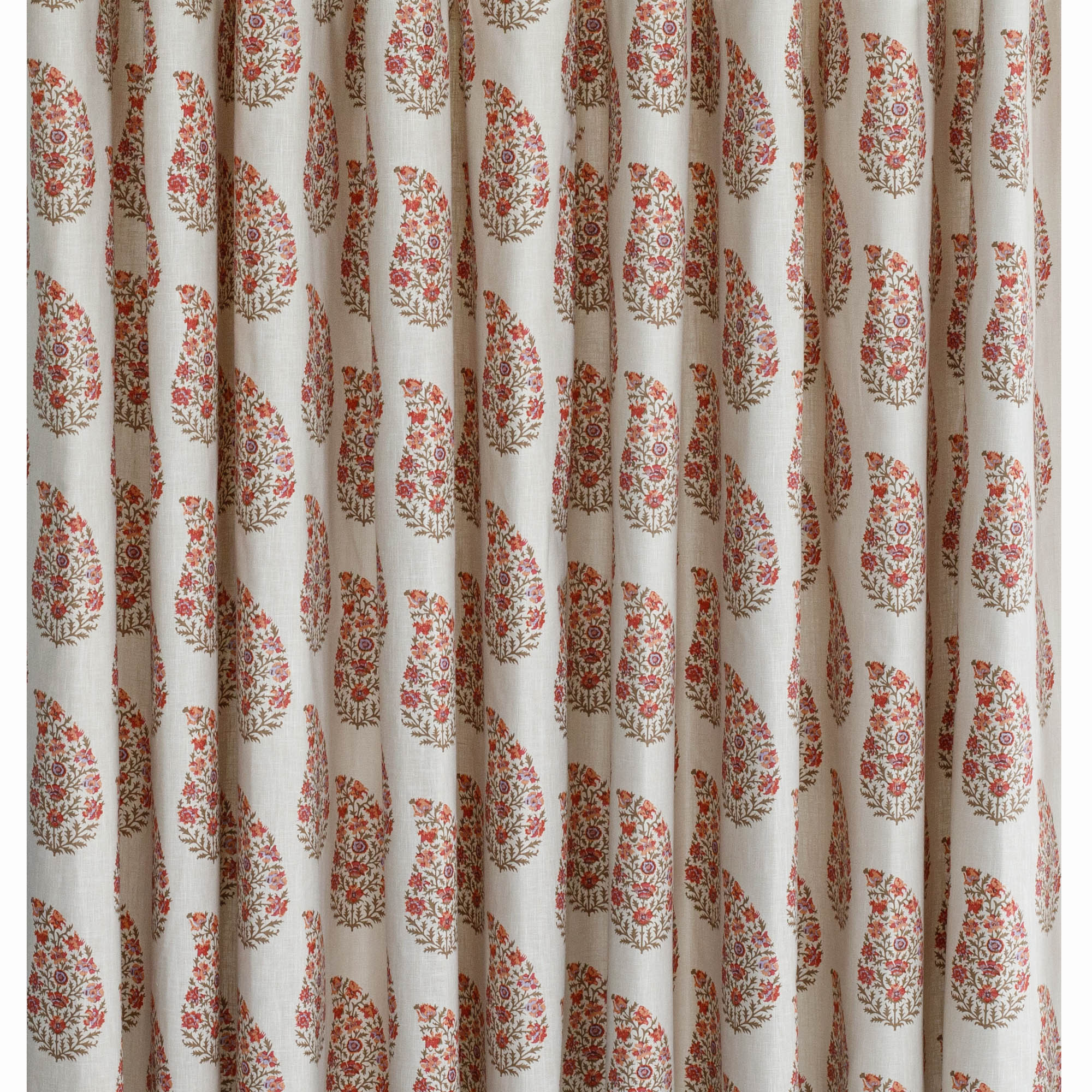 Linen-blend drapery fabrics that showcase a delicate petal block print in four beautiful colours.