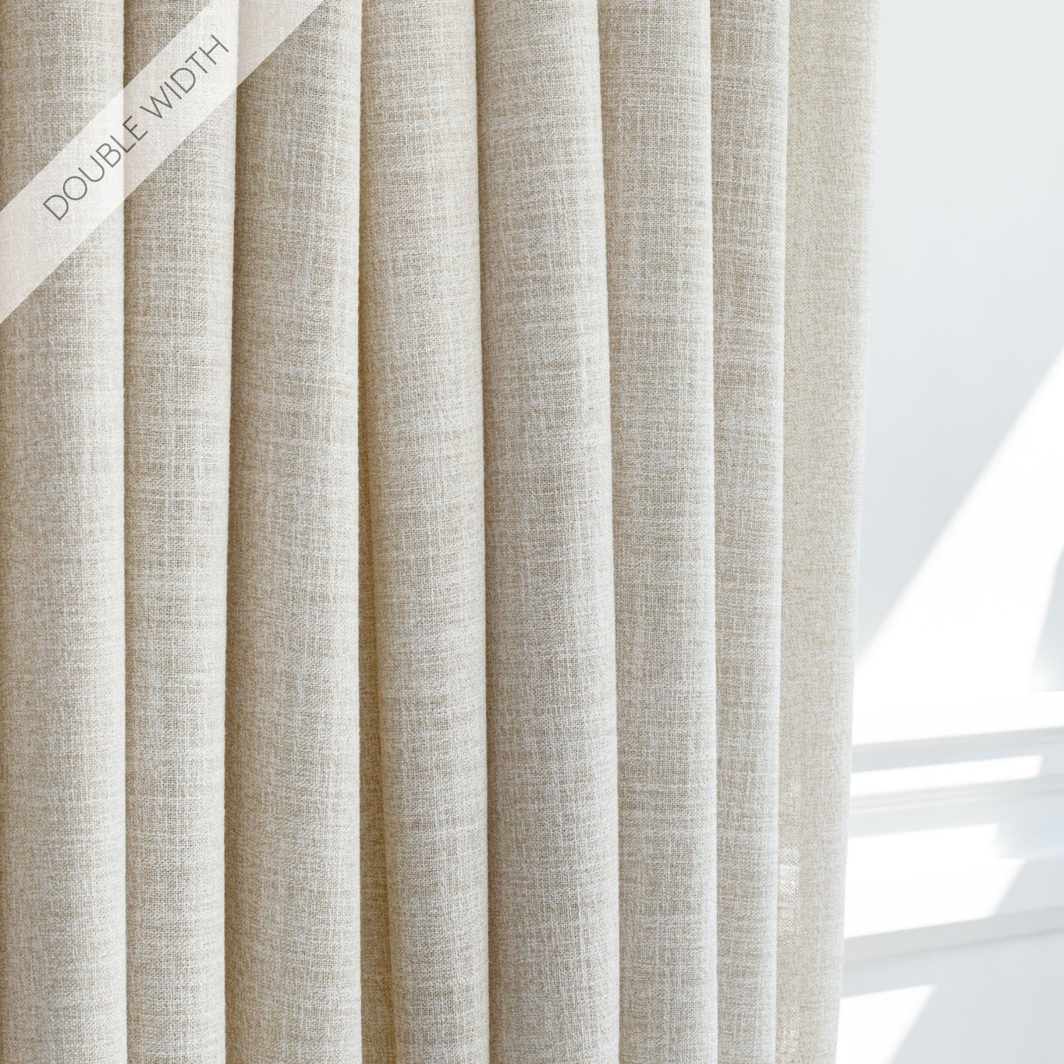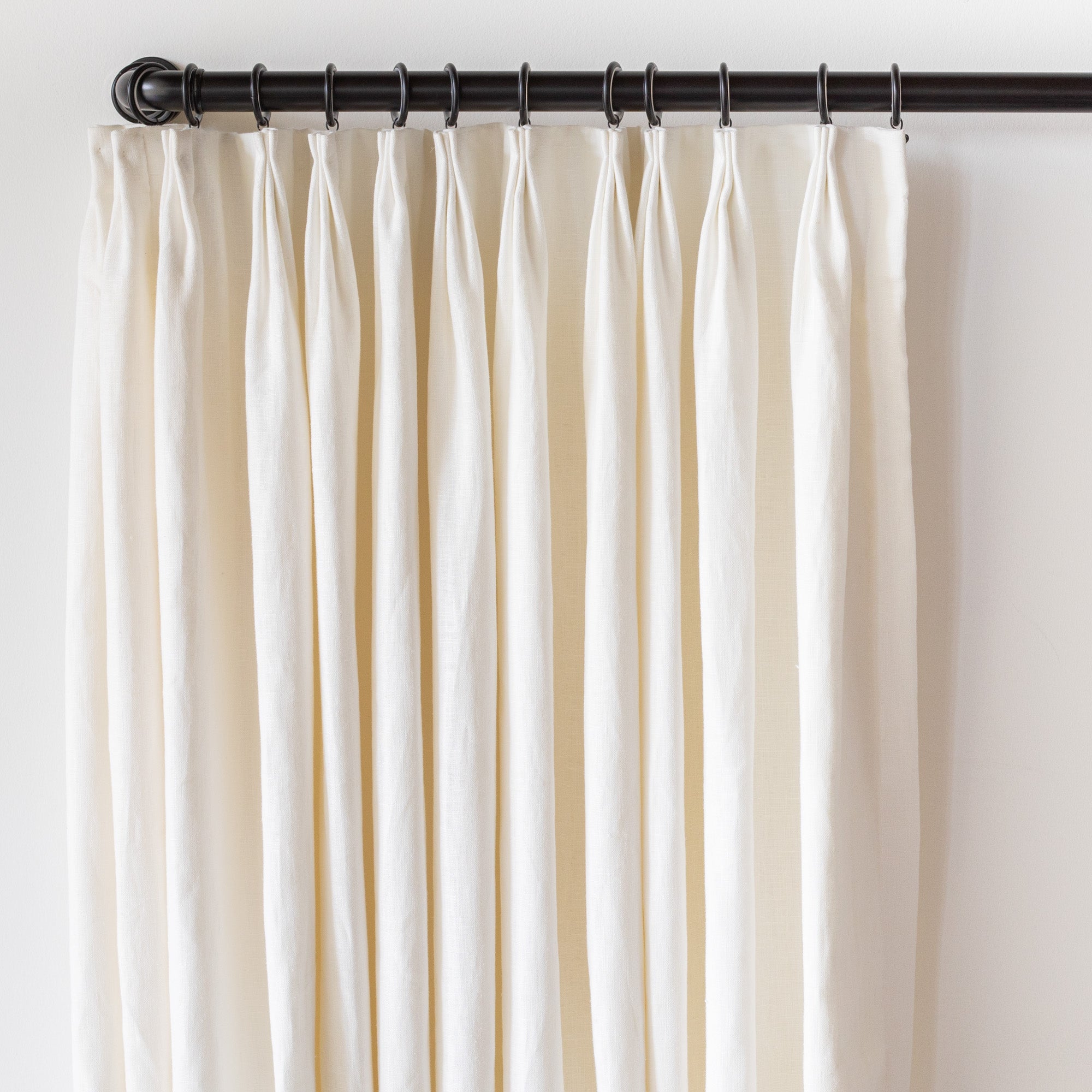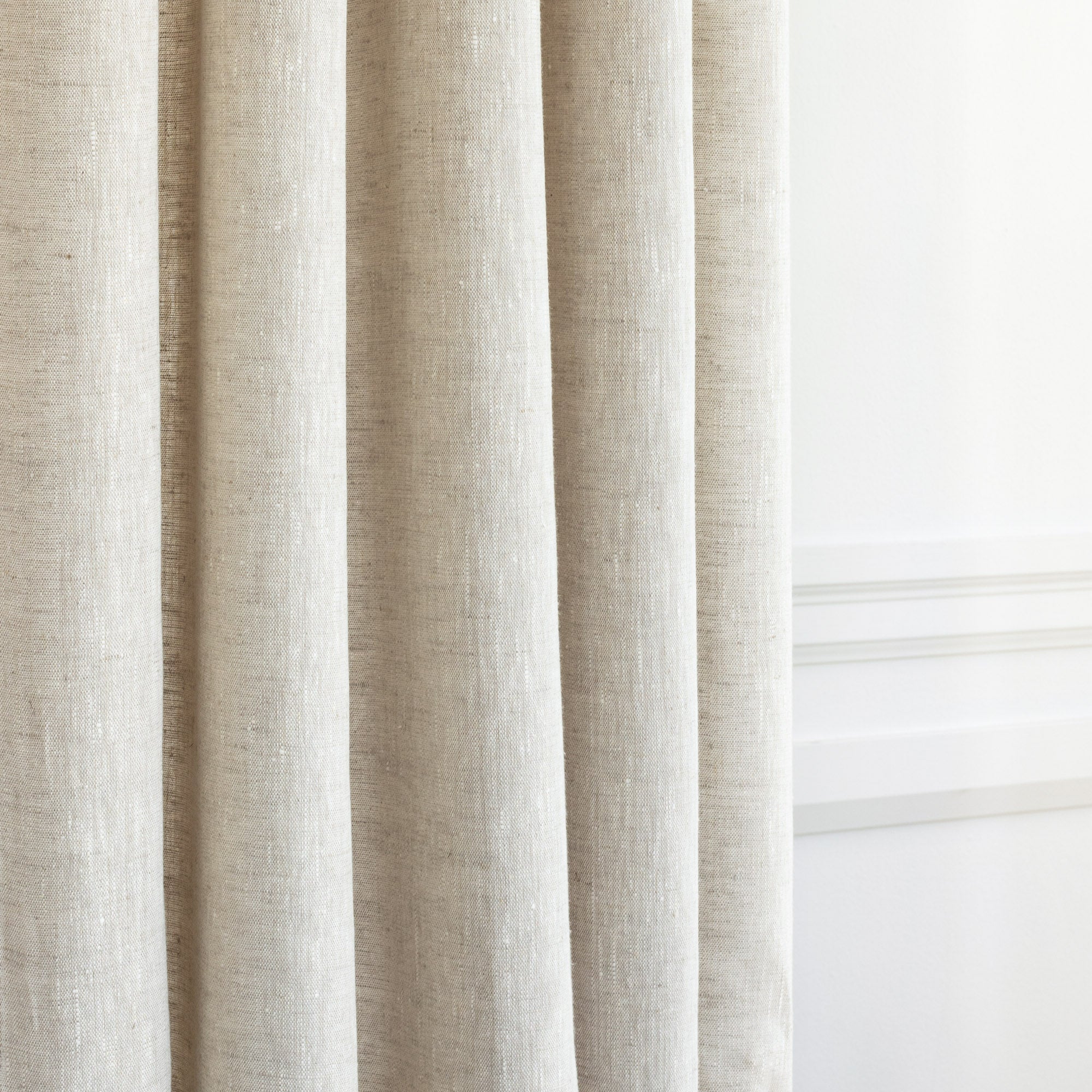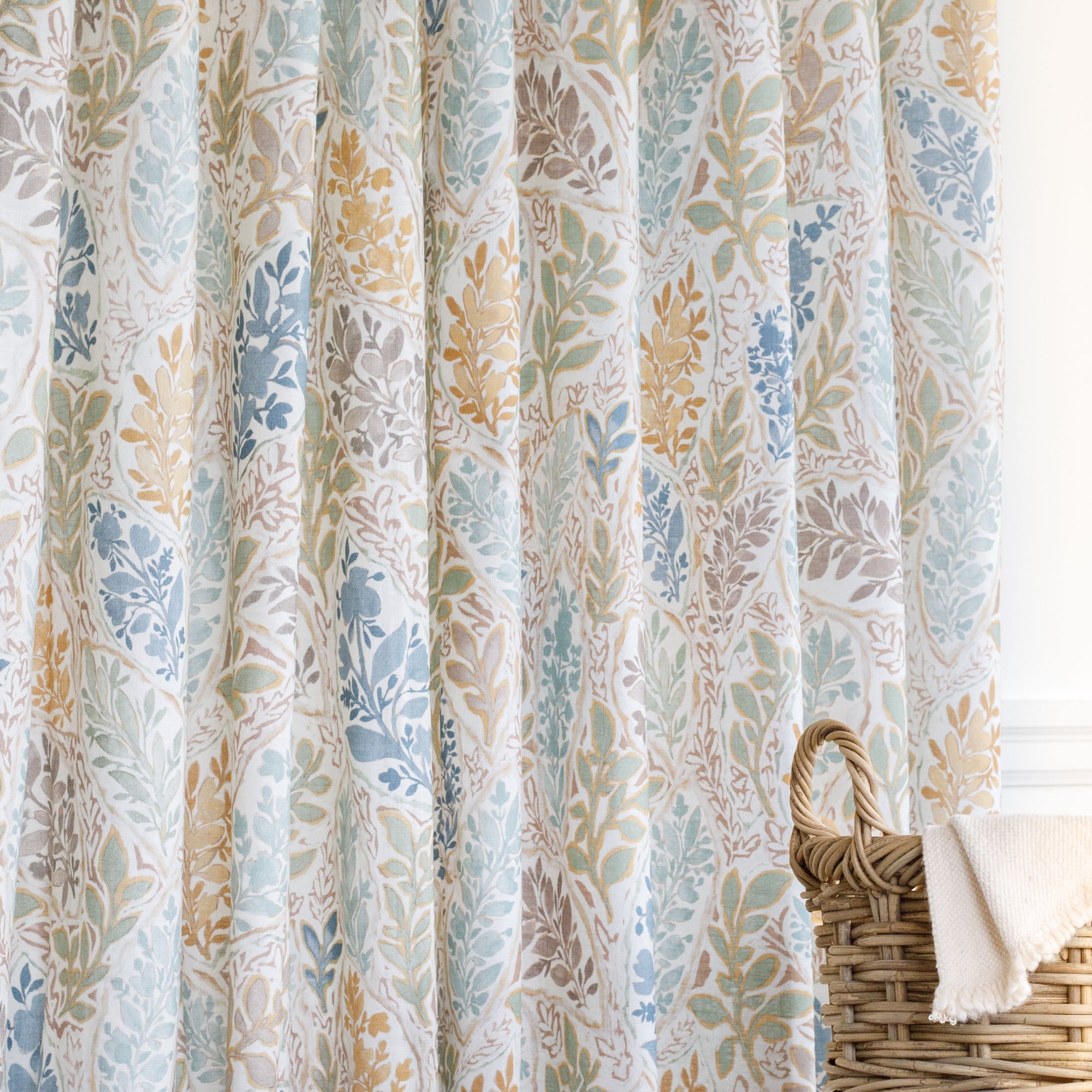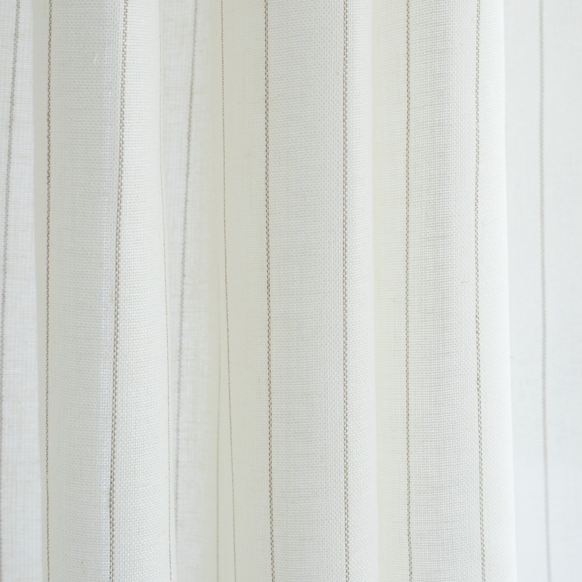 Linen-blend drapery fabrics that showcase a delicate petal block print in four beautiful colours.