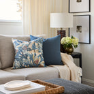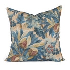 This botanical pillow features a dramatic design of berries, pomegranates and leafy branches in an expressive, hand-painted style. The layered mix of blues and earthy tones lends a soft, timeworn appeal.