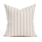 This burgundy and oatmeal striped pillow showcases a simple ticking stripe with subtle vintage charm. It’s an easy-to-pair piece with a timeless and versatile look.