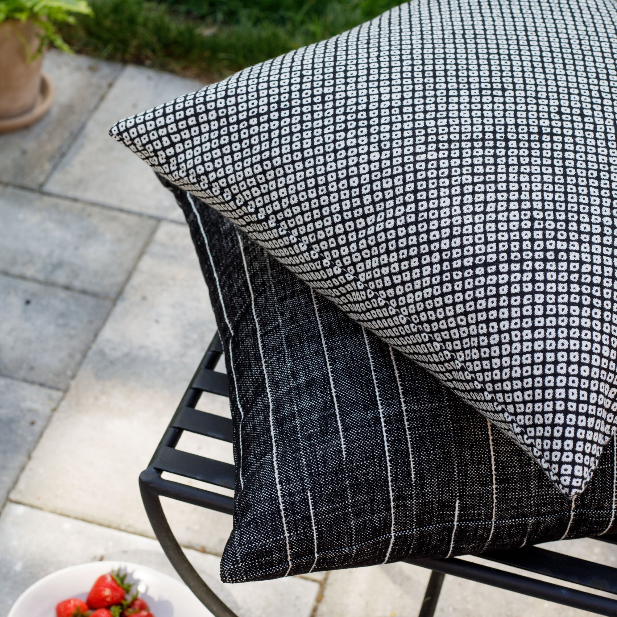 This black and soft white pillow features a graphic, textural pattern with dimension for a contemporary take on the classic houndstooth.