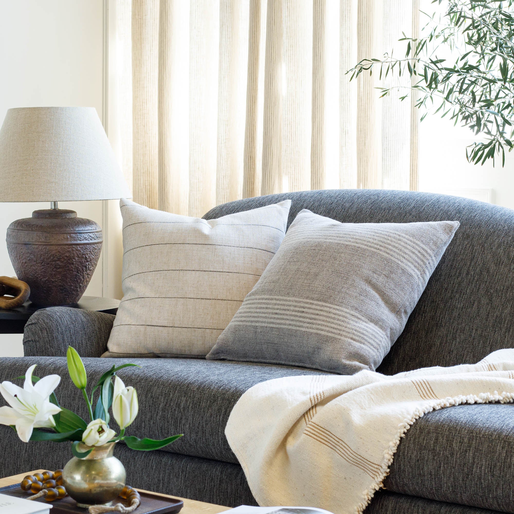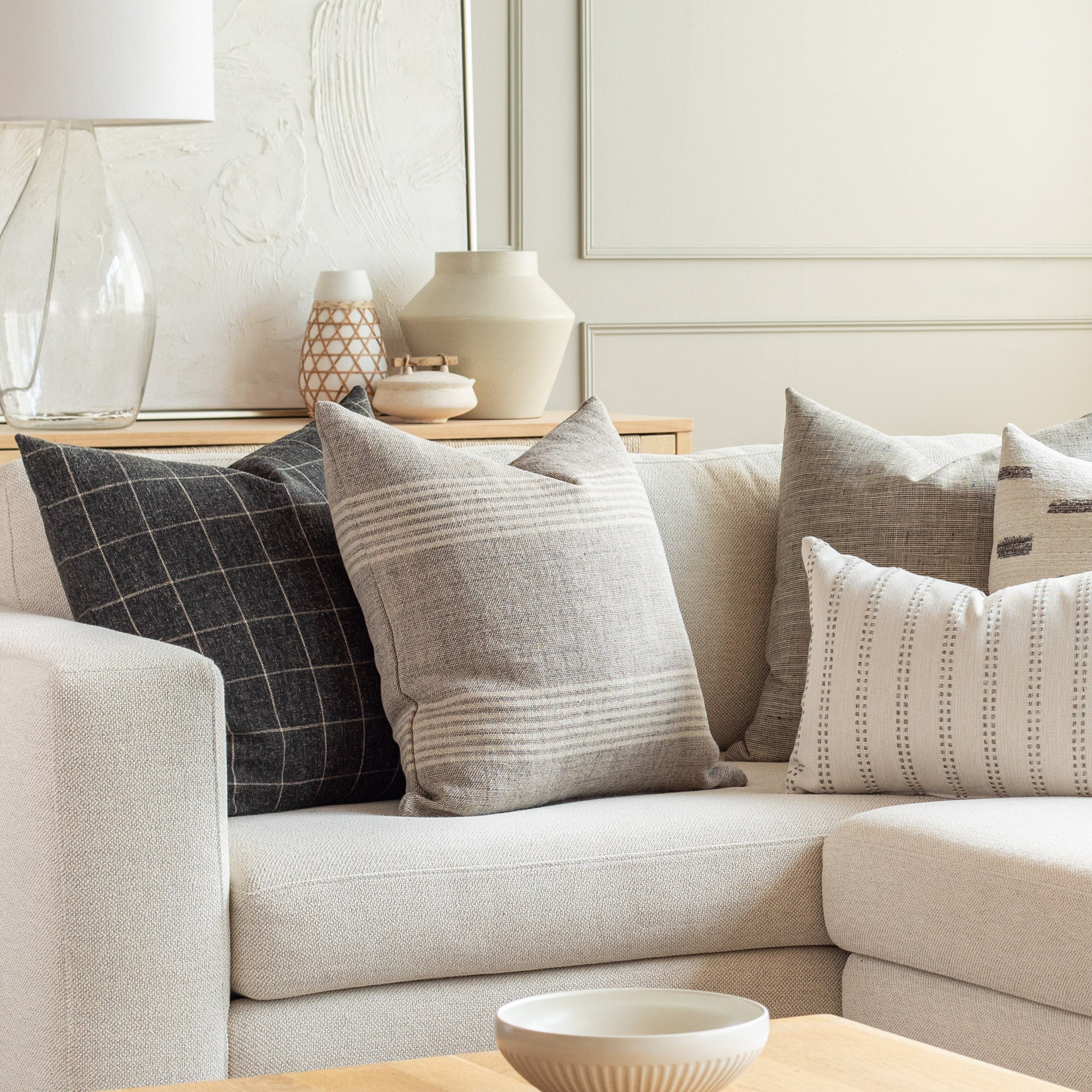 How to use it: This lumbar size is extremely versatile and works perfectly on its own nestled into an occasional chair or to mix up scales when paired with other 20x20 or 22x22 decorative pillows on a sofa. On a bed, this size works well when placed directly in front of a larger square pillow or centred between a pair.