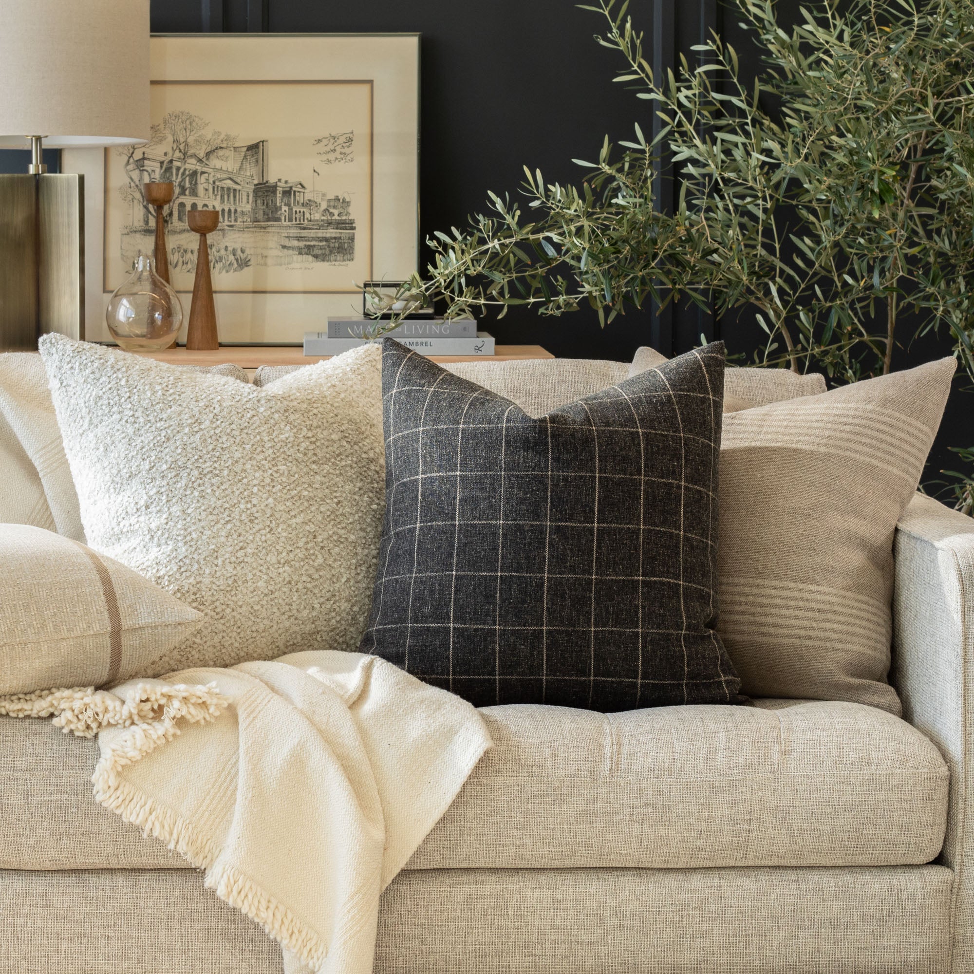 How to use it: This lumbar size is extremely versatile and works perfectly on its own nestled into an occasional chair or to mix up scales when paired with other 20x20 or 22x22 decorative pillows on a sofa. On a bed, this size works well when placed in front of a larger square pillow or centred between a pair.