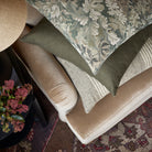 This tapestry-inspired pillow showcases a romantic forest scene in soft, natural tones. The faded greens and browns, paired with the large-scale woven design, give it a refined heritage quality.