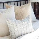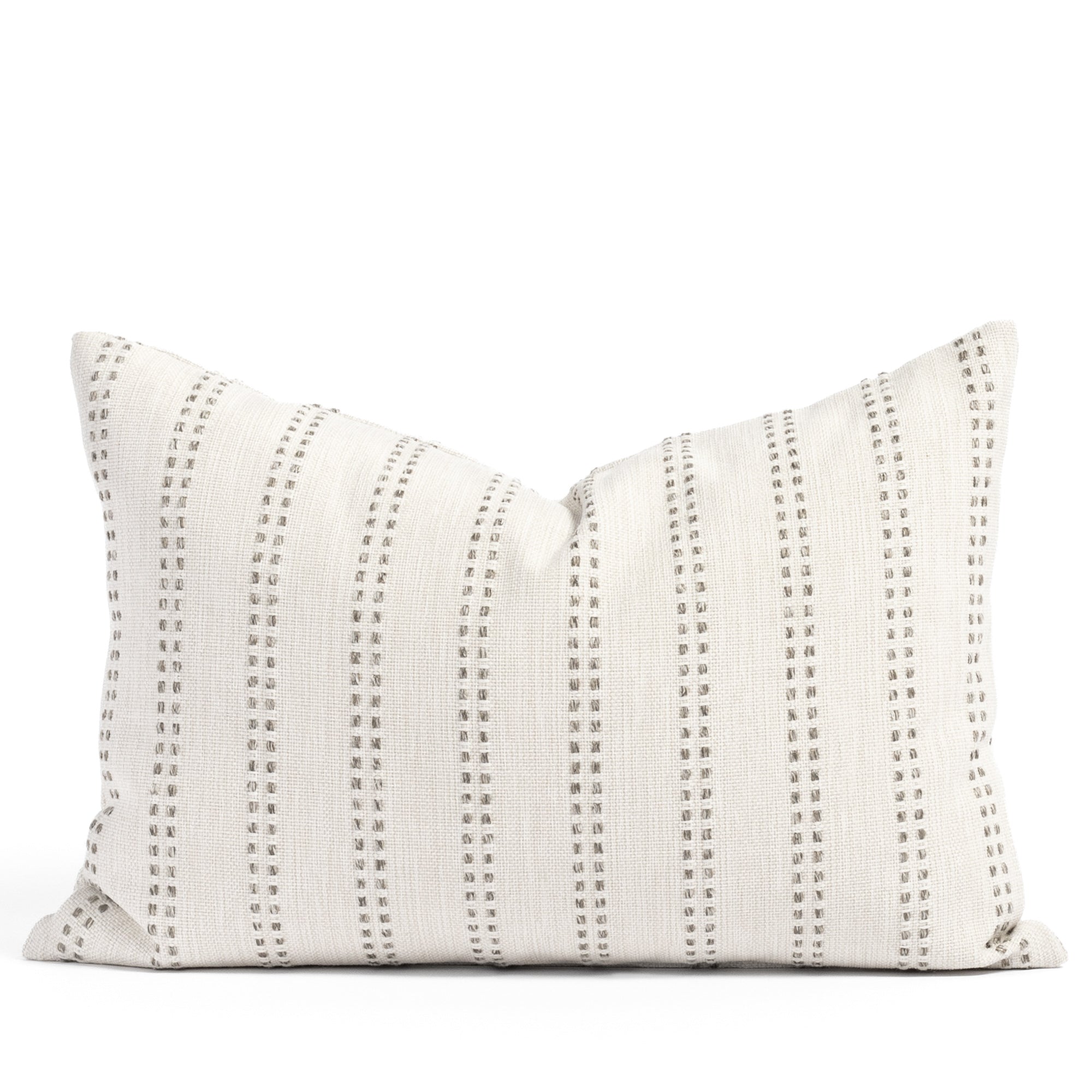 This lumbar pillow serves up a classic neutral palette with raised dotted stripe in gorgeous greige on creamy white. Its subtle pattern would lend a sense of serenity (and stain-resistant beauty) to any space.