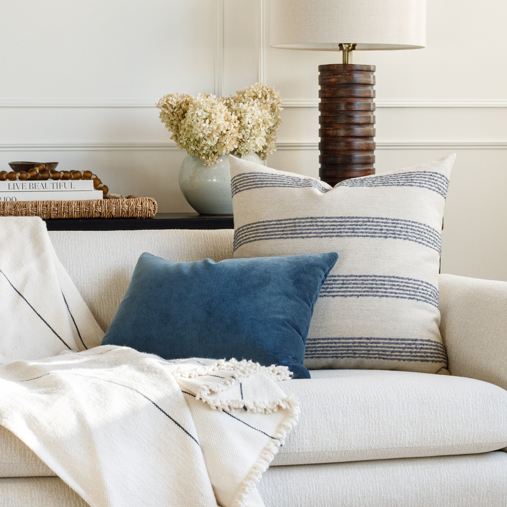 How to use it: This lumbar size is extremely versatile and works perfectly on its own nestled into an occasional chair or to mix up scales when paired with other 20x20 or 22x22 decorative pillows on a sofa. On a bed, this size works well when placed directly in front of a larger square pillow or centred between a pair.