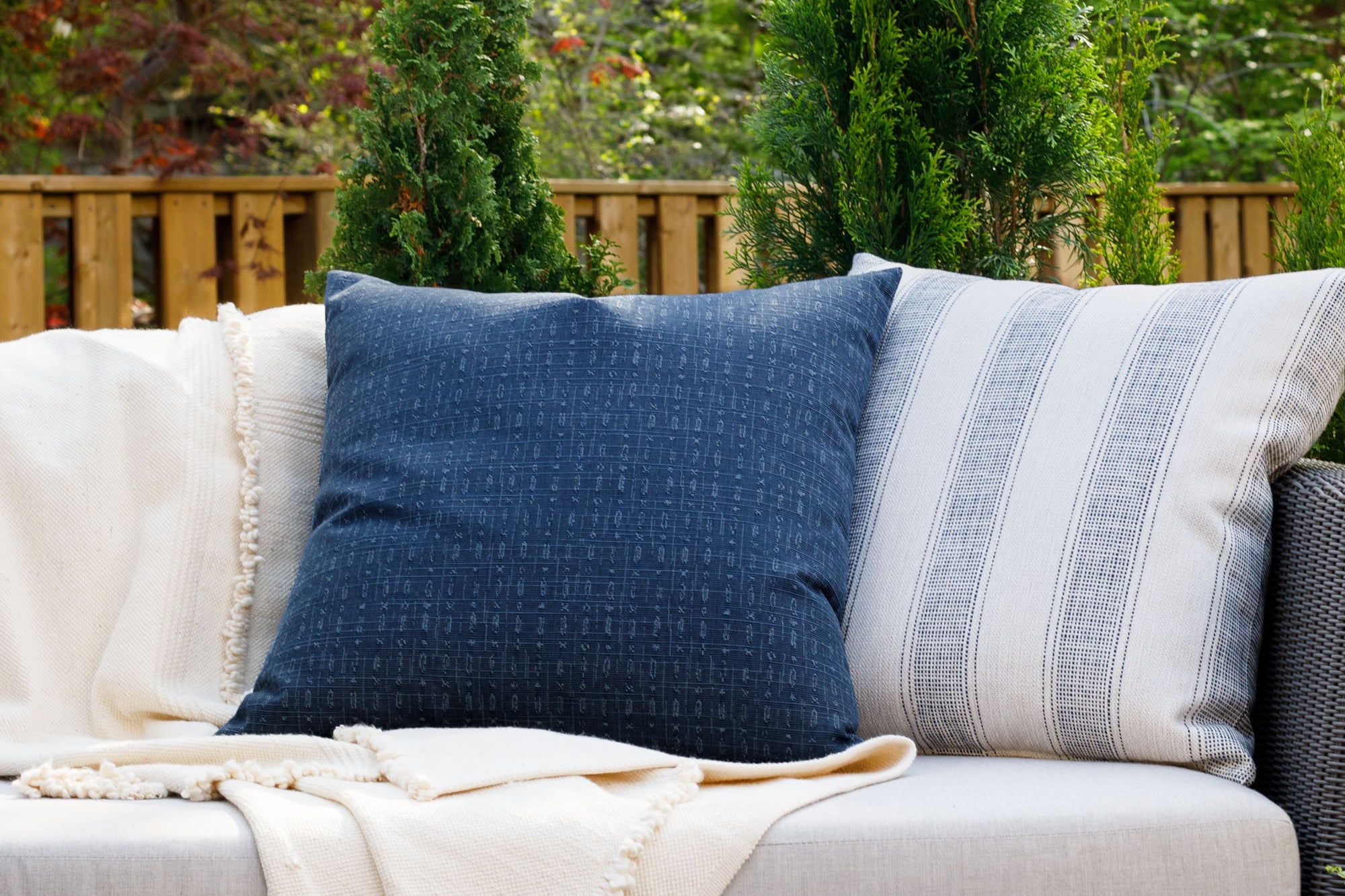 Bring outdoor pillows and cushions inside during poor weather conditions. Keep your outdoor products in their best condition by bringing them inside if it is raining or snowing.