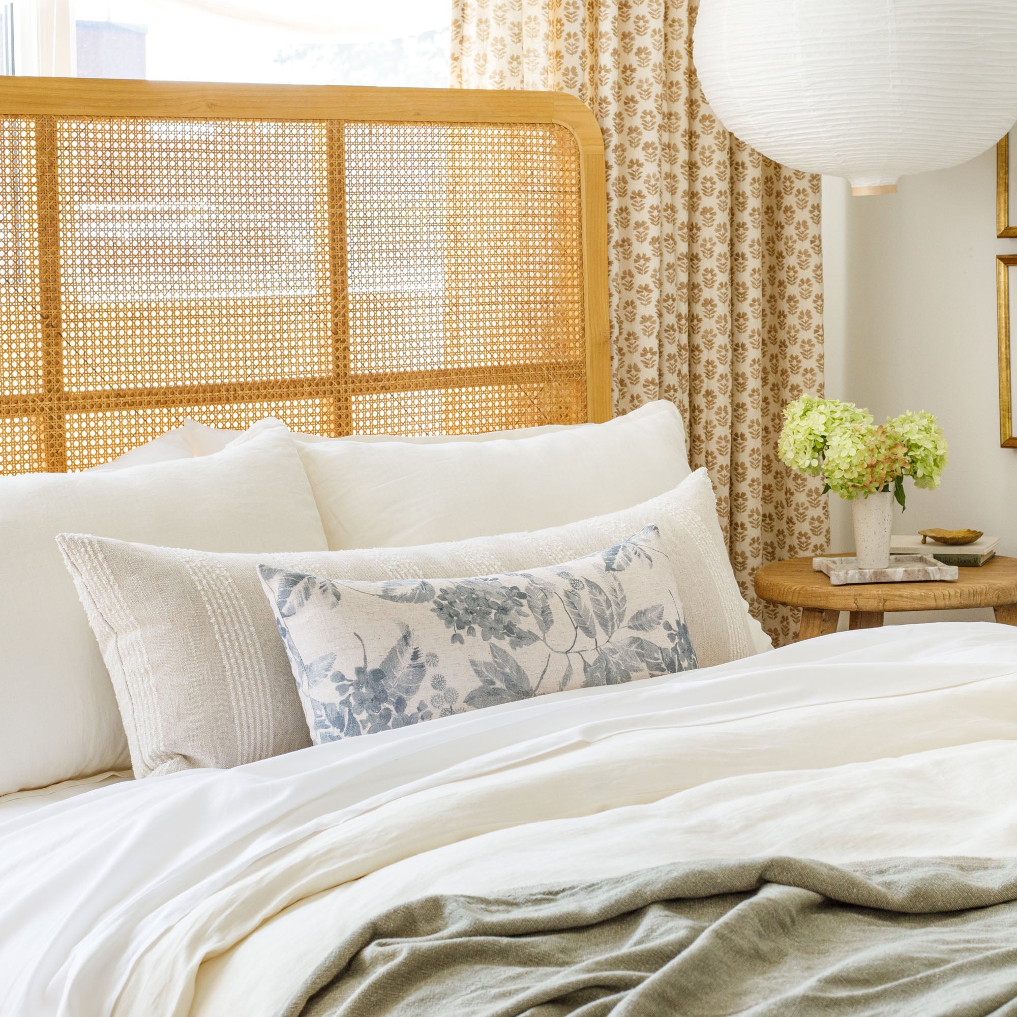Add effortless elegance to your home with this stunning floral pillow. In a palette of indigo blue and oatmeal this beauty features a captivating pattern of botanical wonders from lush leaves to delicate hydrangea blooms. It's both eye-catching yet calming, and is sure to offer layers of character and old-world charm.