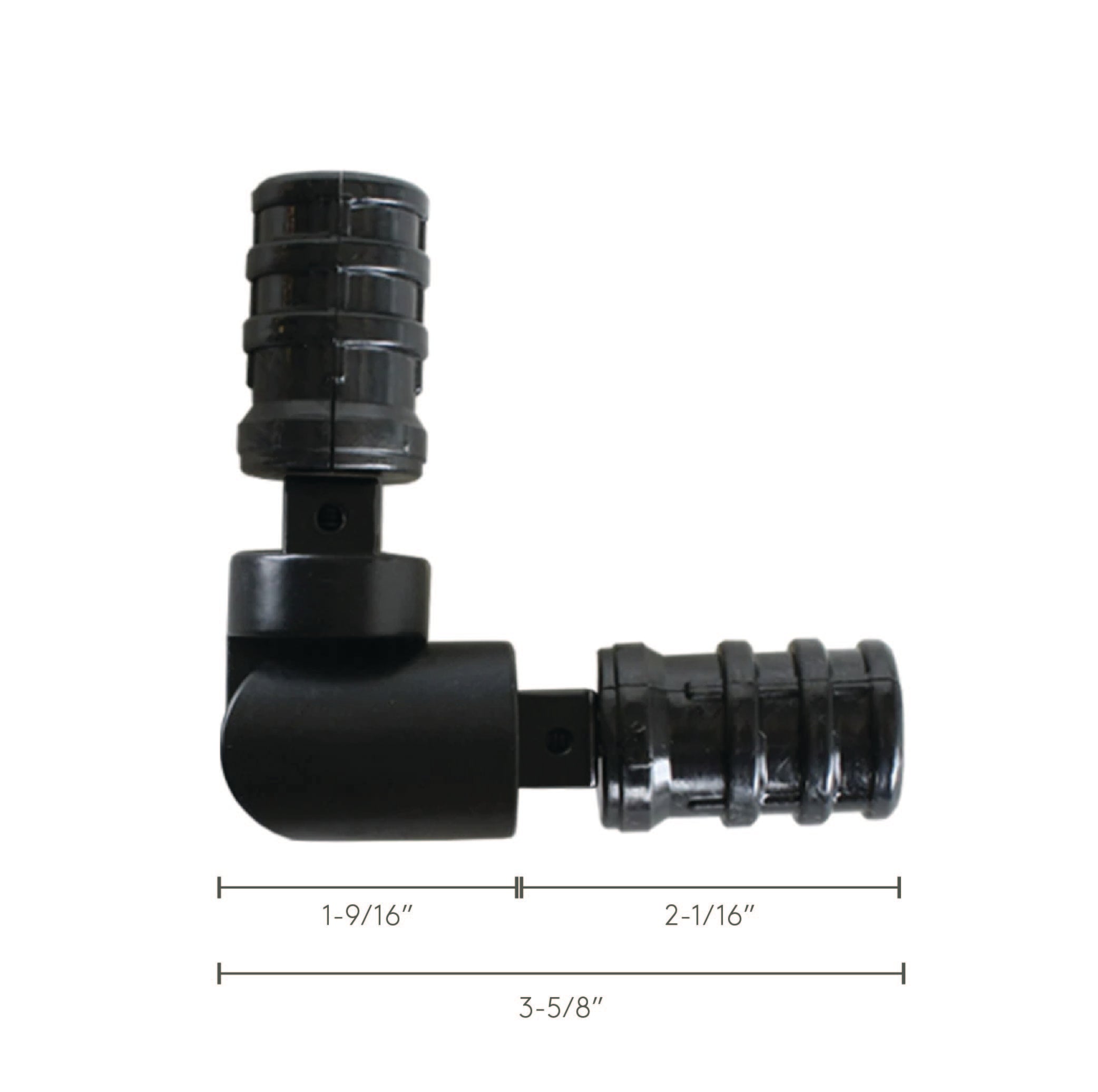This drapery rod elbow is the perfect solution for your bay windows or windows that are at an angle to one another. Rods are joined by inserting the elbow into the open ends and open/adjust to any degree that you need. It is compatible with both our standard and channel track rods; however, with channel track it will connect the rods but won't allow the drape pass through. For the channel track application simply unscrew the plastic plug before inserting the elbow.