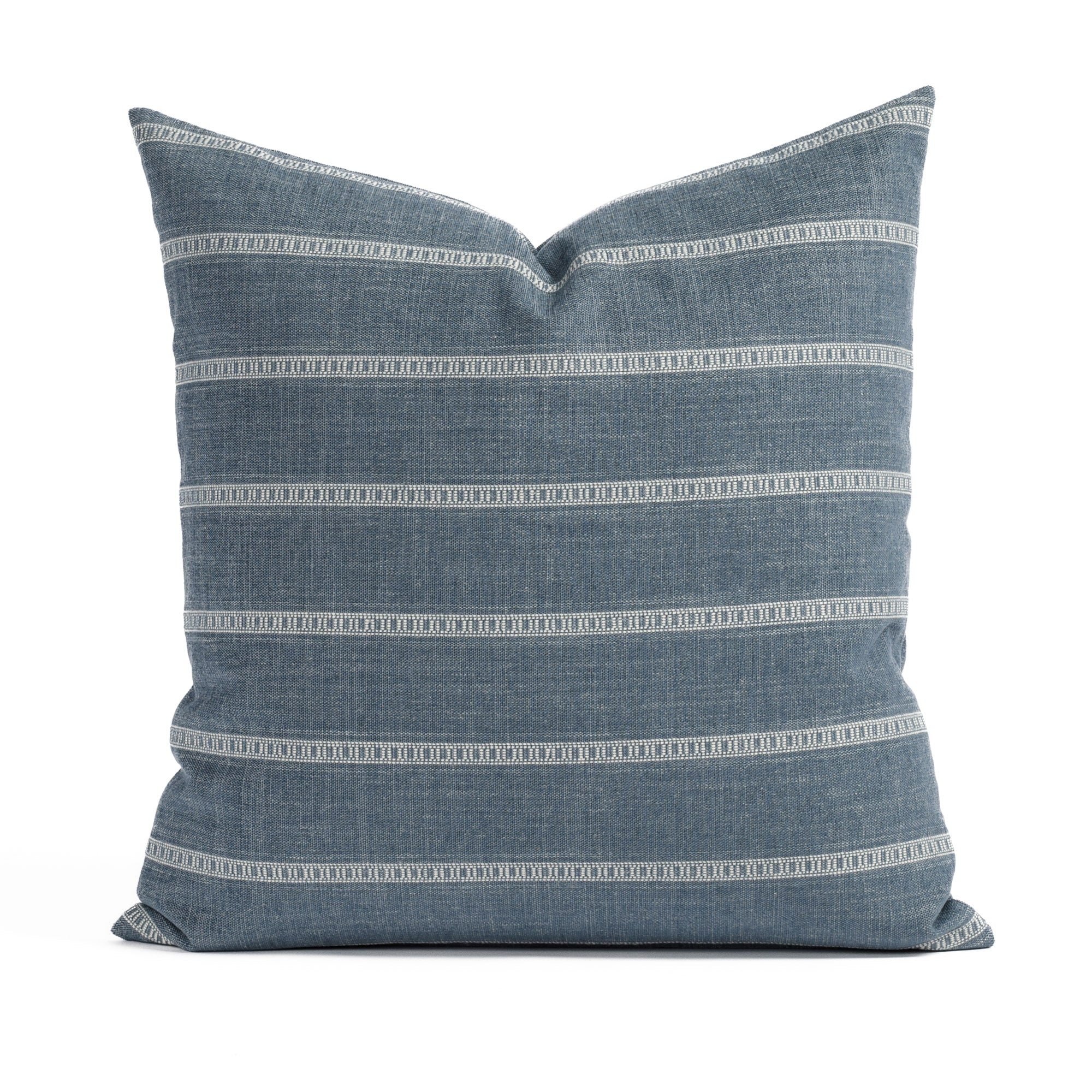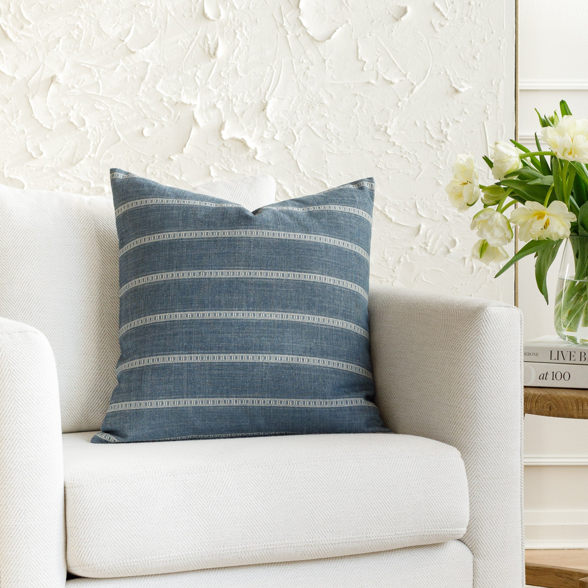 Carson Stripe 16x16 Cube Ottoman, Stone Blue