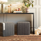 This striped cube ottoman, in a deep, earthy charcoal is incredibly versatile and will feel right at home in just about any space. With a simple pattern that offers maximum impact, this piece is an instant classic that has an organic-meets-modern appeal. Made with fabric from our High Performance fabric line, it's both tailored and durable and will be the perfect perch or place to kick up your feet.