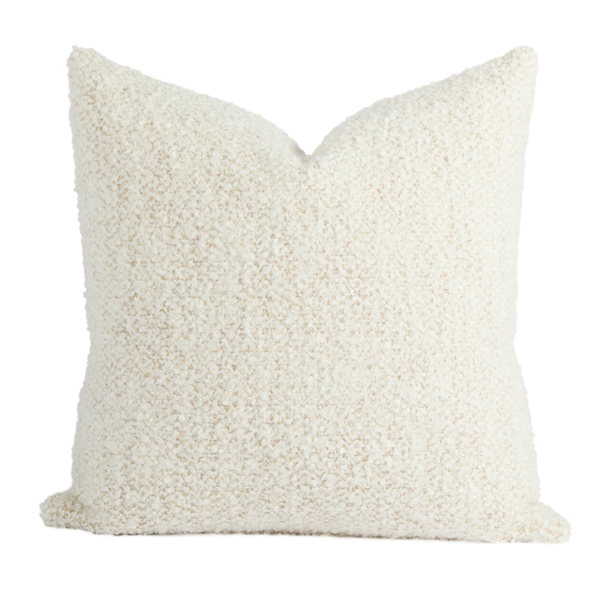 Amp up the texture with this wooly boucle pillow that will invite you to sink right in. With a dimensional cream and oatmeal tone, the loopy material has an exaggerated weave that is ultra soft to the touch. This beautiful pillow is cozy, organic and luxurious all at once and is sure to add layers of warmth to your sofa, bed or nook.
