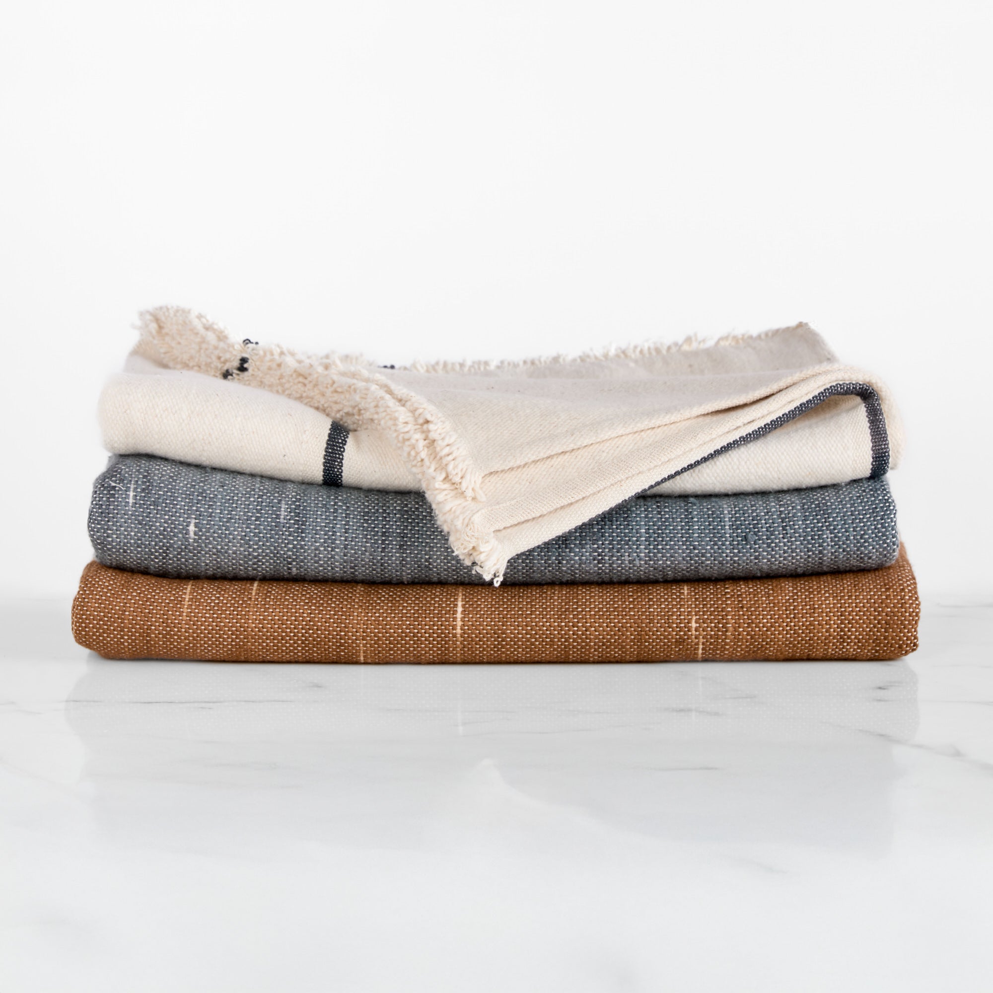 This stunning cotton throw blanket, in a gorgeous cream and navy stripe, epitomizes slow luxury. From the natural local materials and dying process to the traditional looms, lovingly operated by artisans rich in history of the trade, each piece is ethically handcrafted in Paraguay in small batches. This authentic process and outlook is celebrated in the blanket’s chunky weave, earthy tones and subtle imperfections. Welcomed into your home it will offer a not only a layer of texture and comfort, but also a sense of history and connection to a local culture.