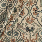 This multipurpose block print style fabric features a loose floral vine pattern on a faded tan, woven ground cloth. With whimsical bird line drawings scattered throughout, the combination of nutmeg brown, aquamarine and French blue come together to create a warm and organic material that will allow you to embrace colour in an effortless and livable way.
