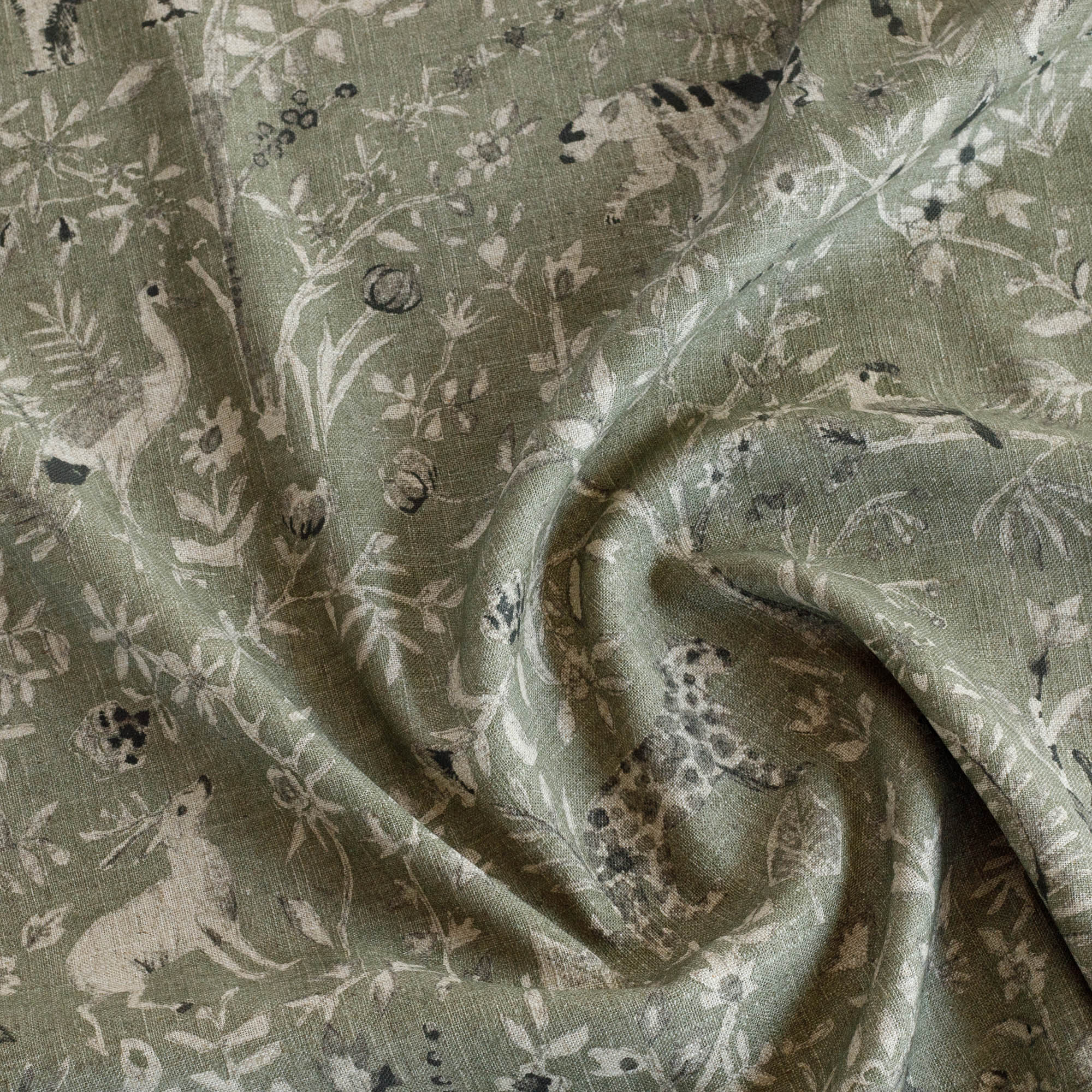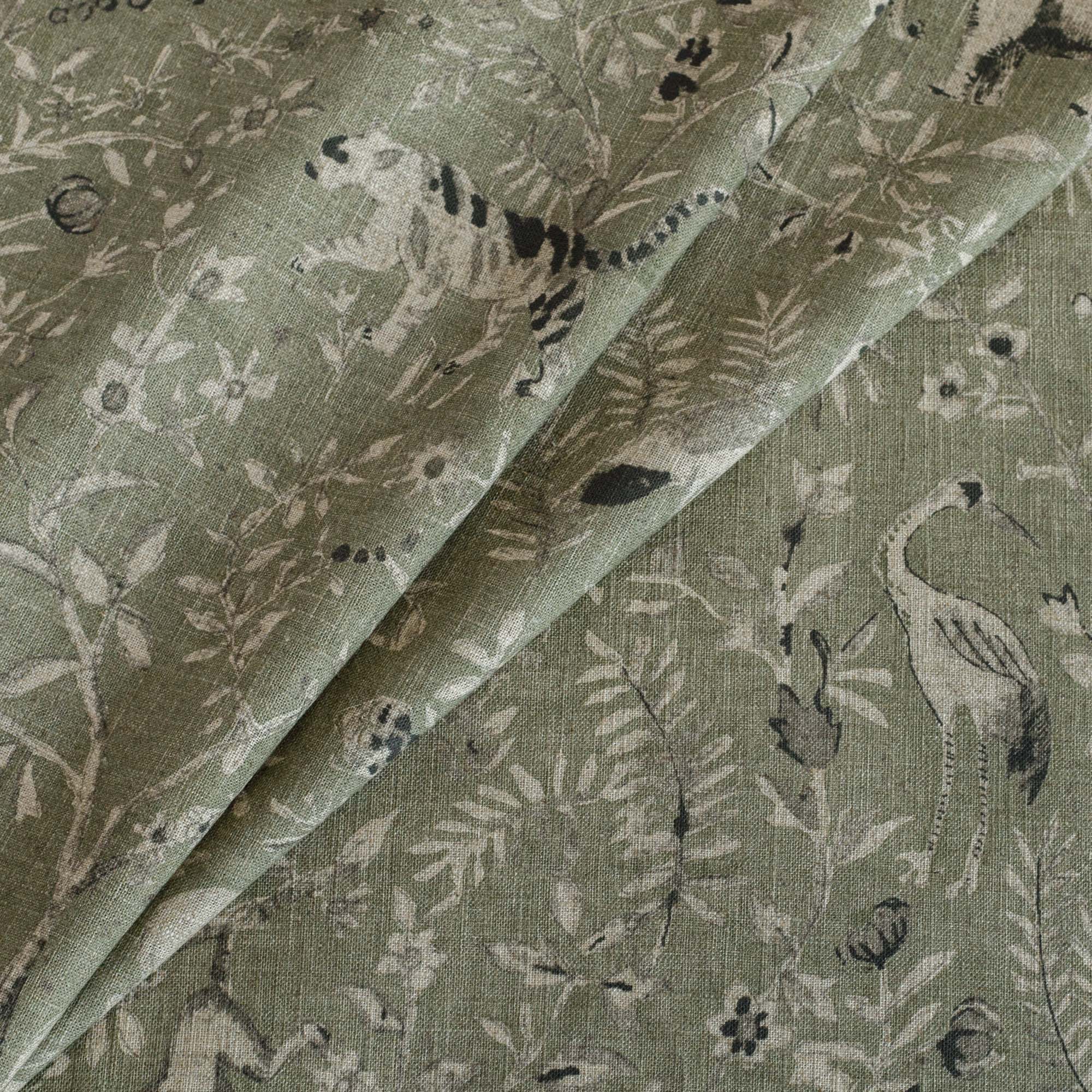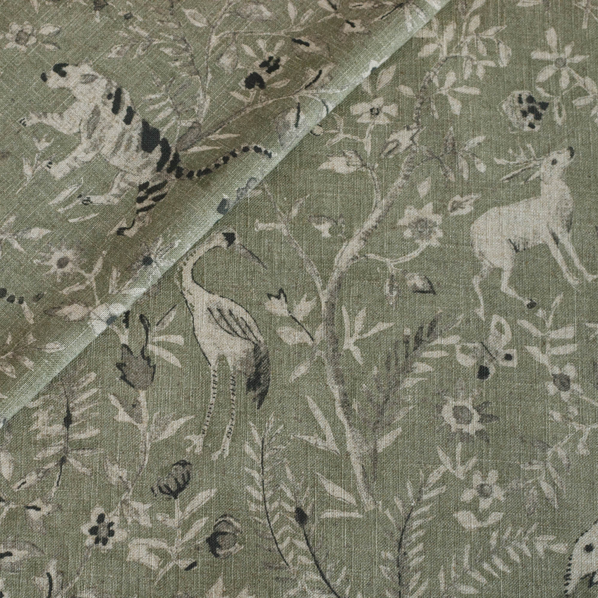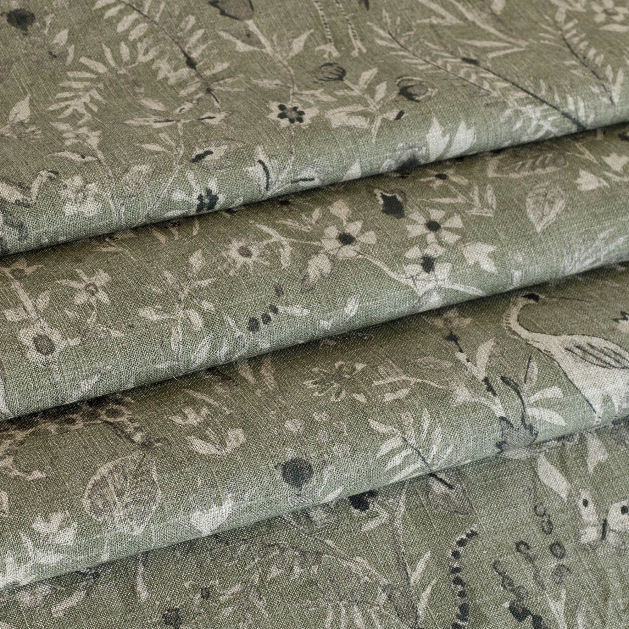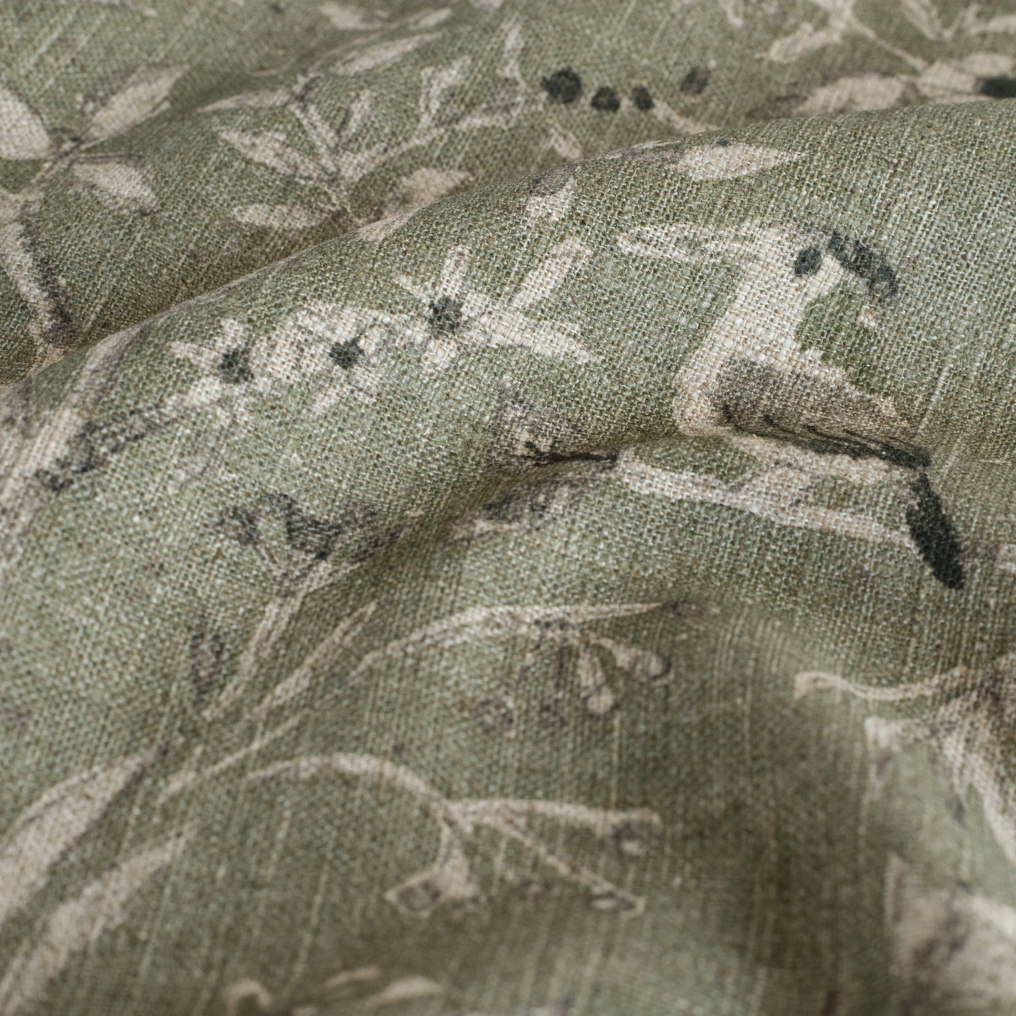 This high-performance upholstery fabric features moss green ticking stripes on an oatmeal base. It’s a classic and versatile material that offers a timeless and tailored look.