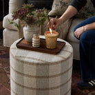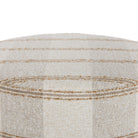 This neutral round ottoman offers a fresh take on a classic check, with subtle stripes forming a simple yet striking plaid effect. The refined design gives it a crisp, tailored look.