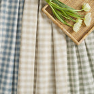 This light green and white plaid upholstery and drapery fabric features a classic small-scale check. It’s durable, versatile, and easy to layer with solids and patterns.