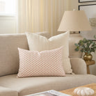 This romantic lumbar pillow showcases a delicate petal block print in a vintage rose palette. It will add the perfect pop of pattern and a rich dose of chic, country charm.