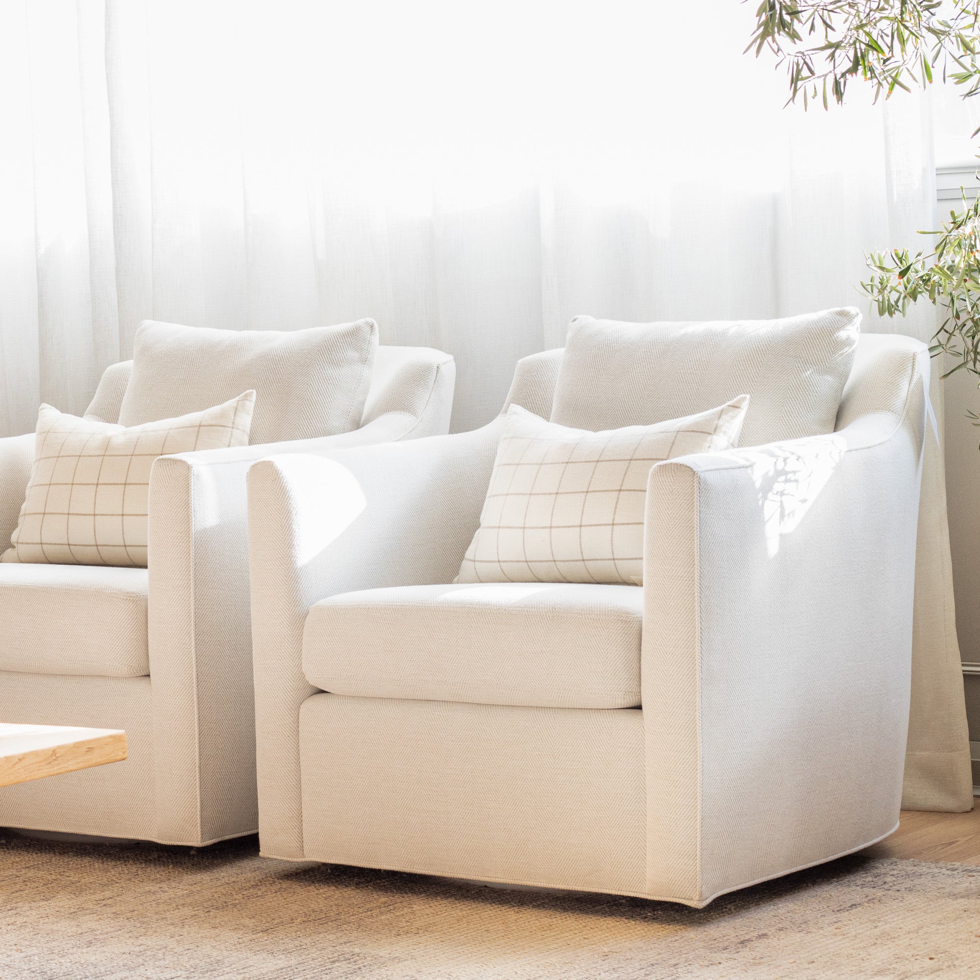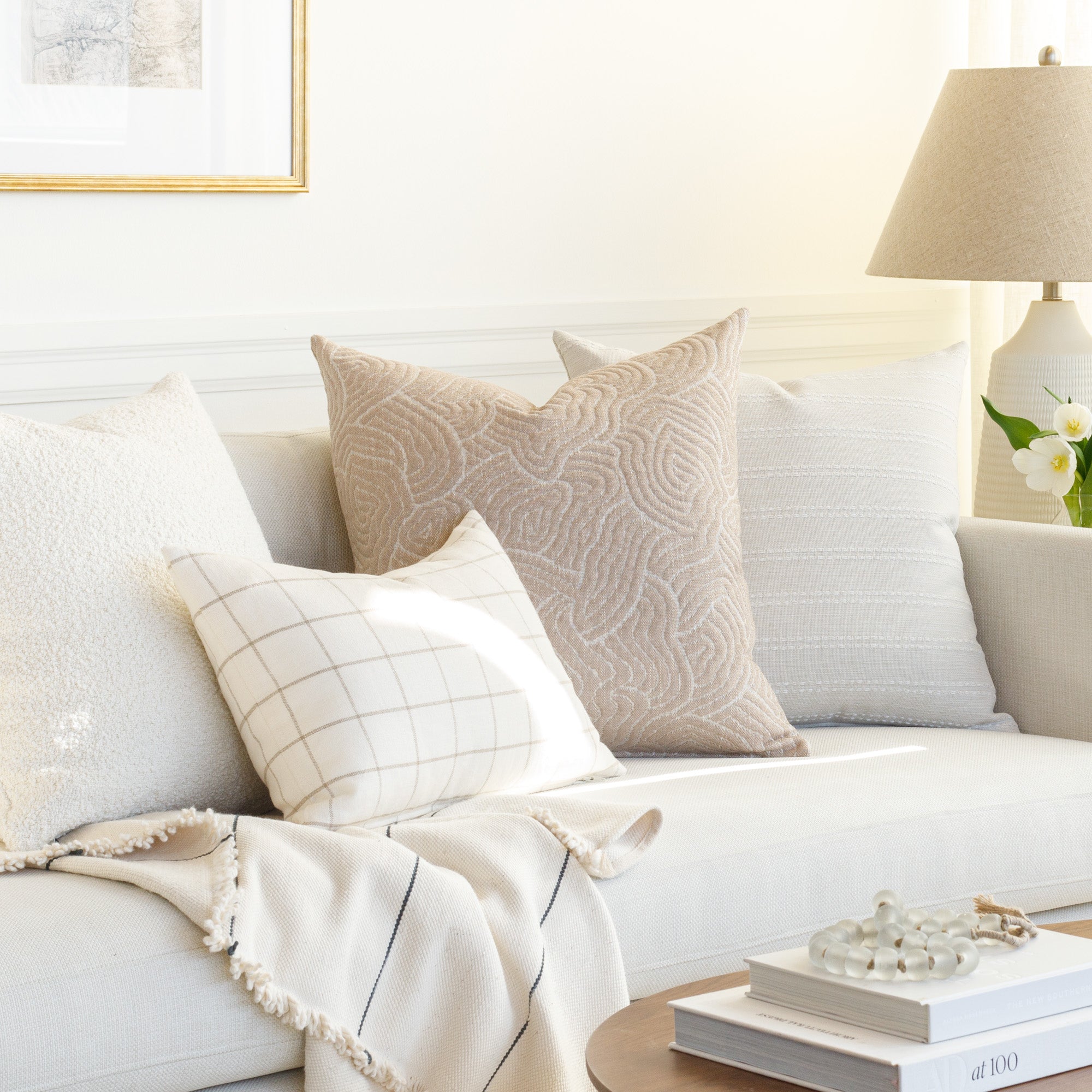 This beautiful and hearty 100% linen fabric weaves together light cream and natural beige tones to create a classic windowpane pattern. The subtle, imperfect slubs and washed texture gives this material a casual and organic feel that will add layers of timeless character.