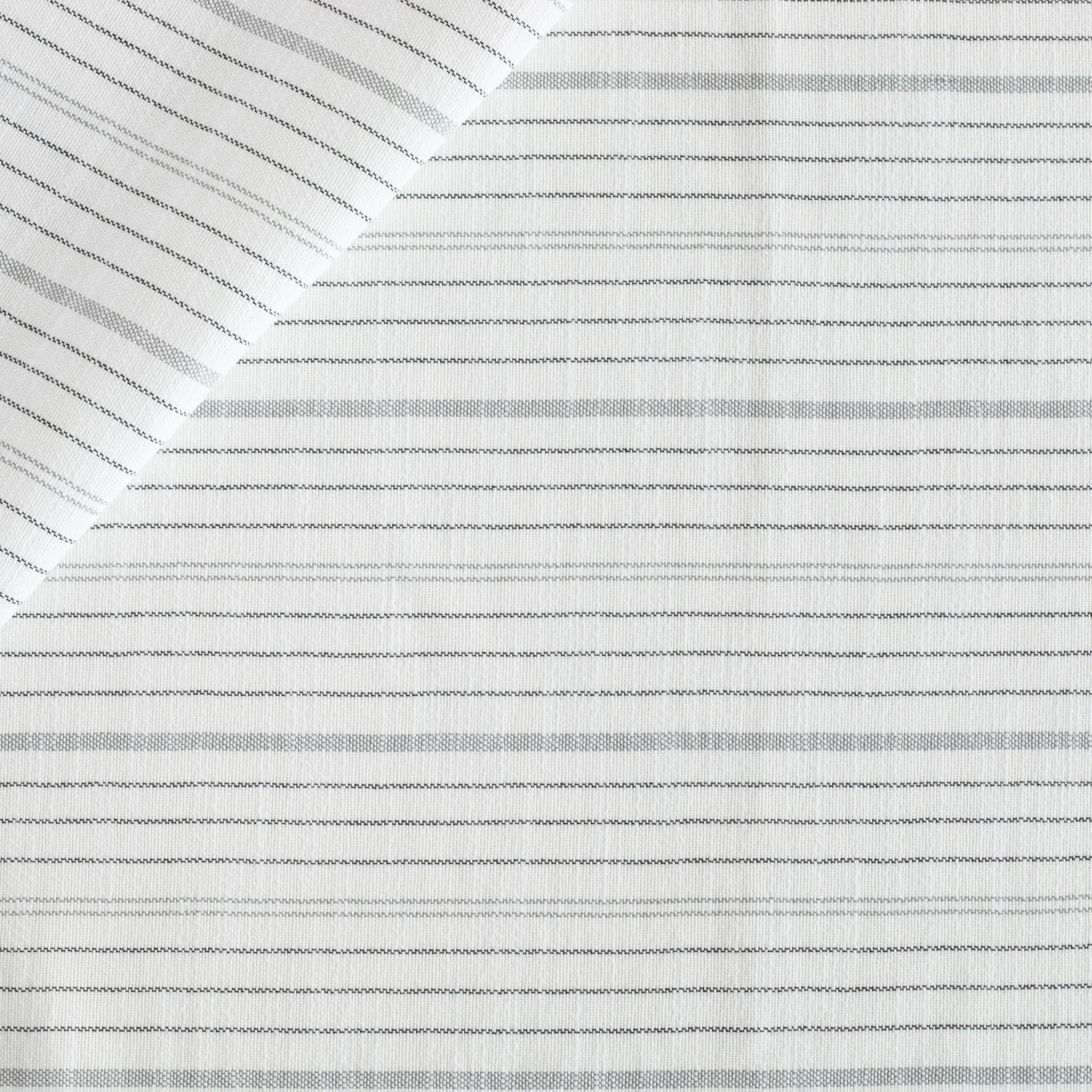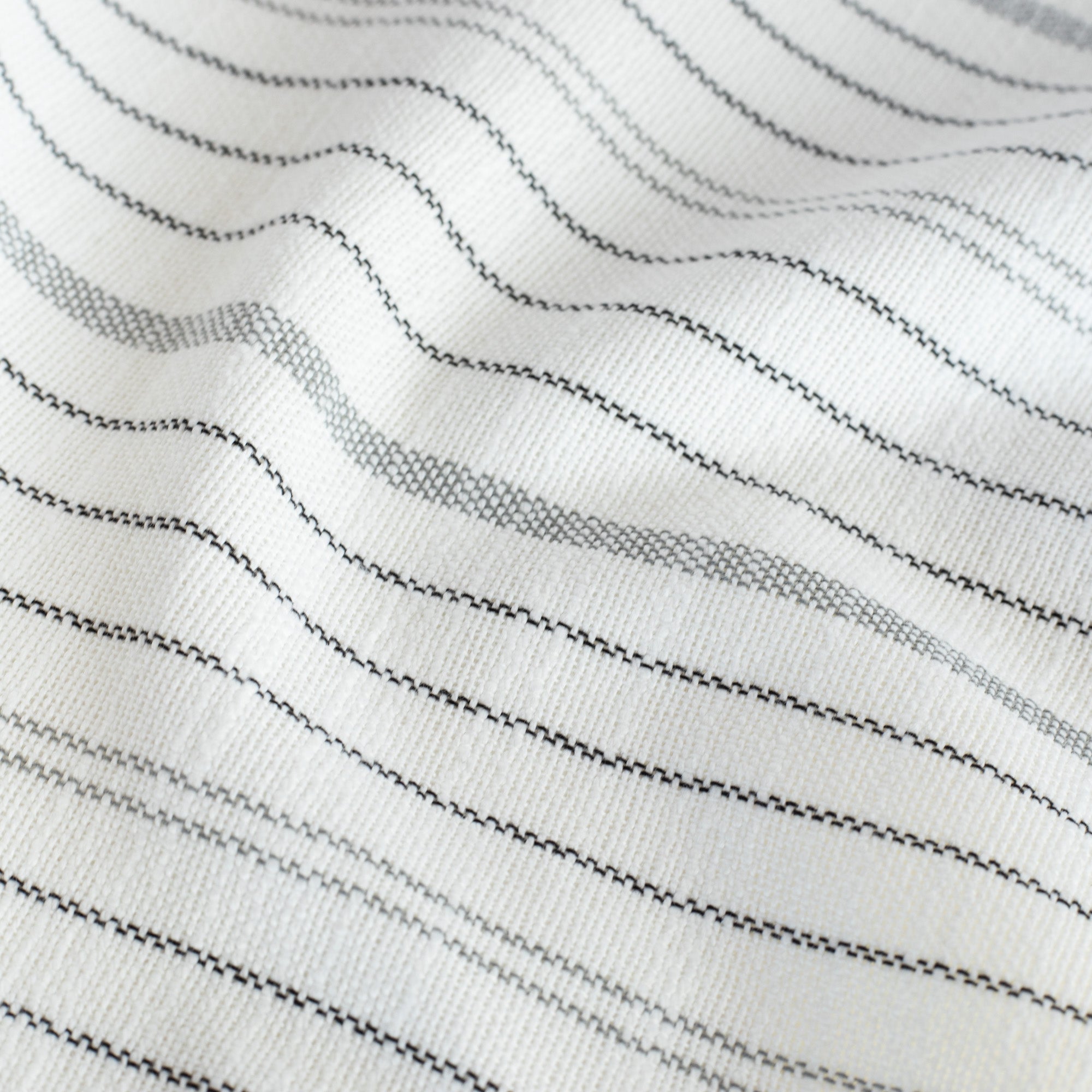 Black, white and grey mingle in this modern stripe. A medley of line weights offers a contemporary spin on the classic pattern, for a graphic yet understated look.