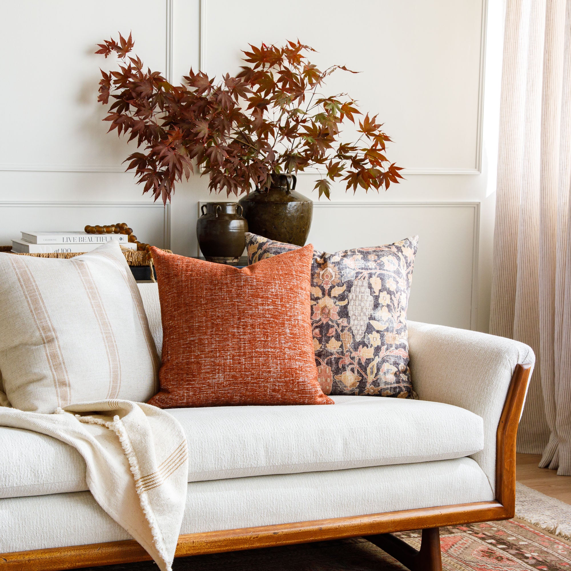 This rusty red upholstery fabric will bring an instant dose of luxurious warmth to your space. Its heavyweight, structured weave adds substance, while the blend of beige cotton and earthy crimson chenille creates a dynamic twist on a solid design. Reminiscent of a vintage, time-worn rug, this fabric will bring both texture and timeless character to any room.