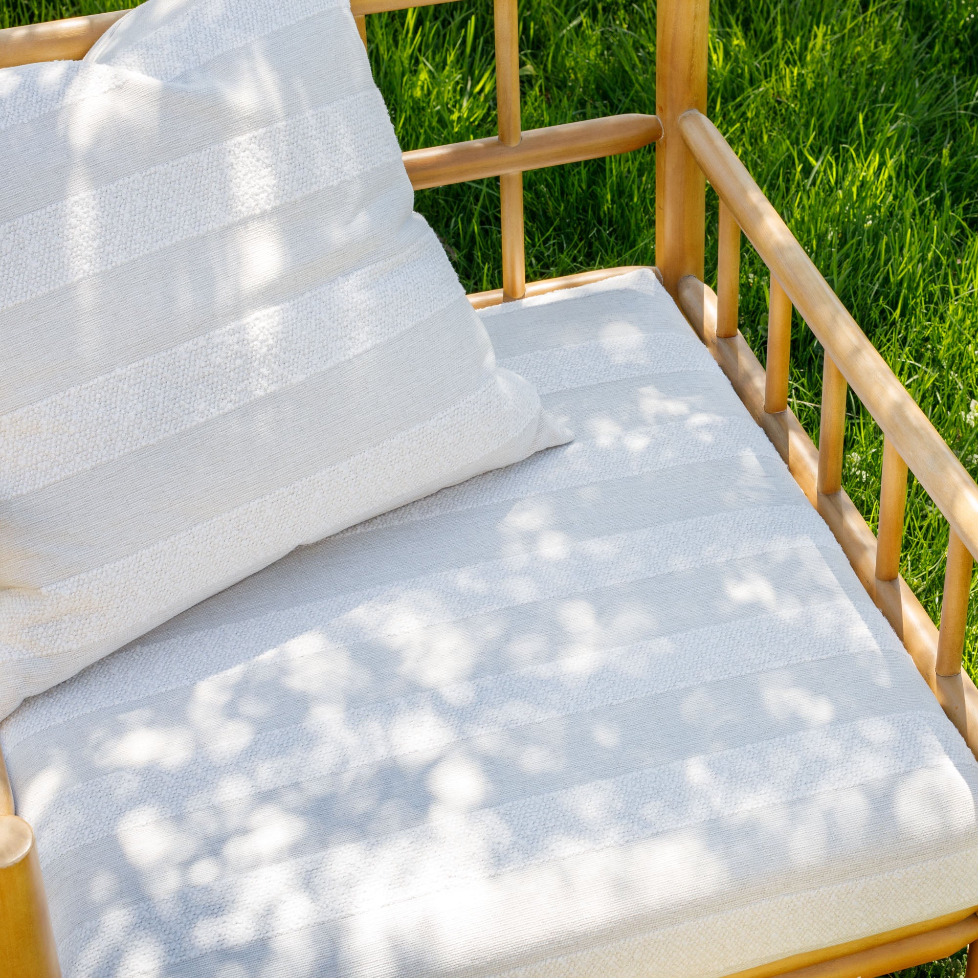 - Care Instructions: Simply spot clean with soap and water and lay flat to dry. No ironing or hot dryer—this fabric does not like heat. For tougher stains spray with ordinary bleach and water (1part bleach, 10 parts water), scrub gently to prevent “fuzzing,” rinse thoroughly, lay flat and let air dry. Dry cleaning is NOT recommended; outdoor fabrics can be damaged by solvents used by some dry cleaners, causing them to lose their UV protection, which keeps them fade resistant.