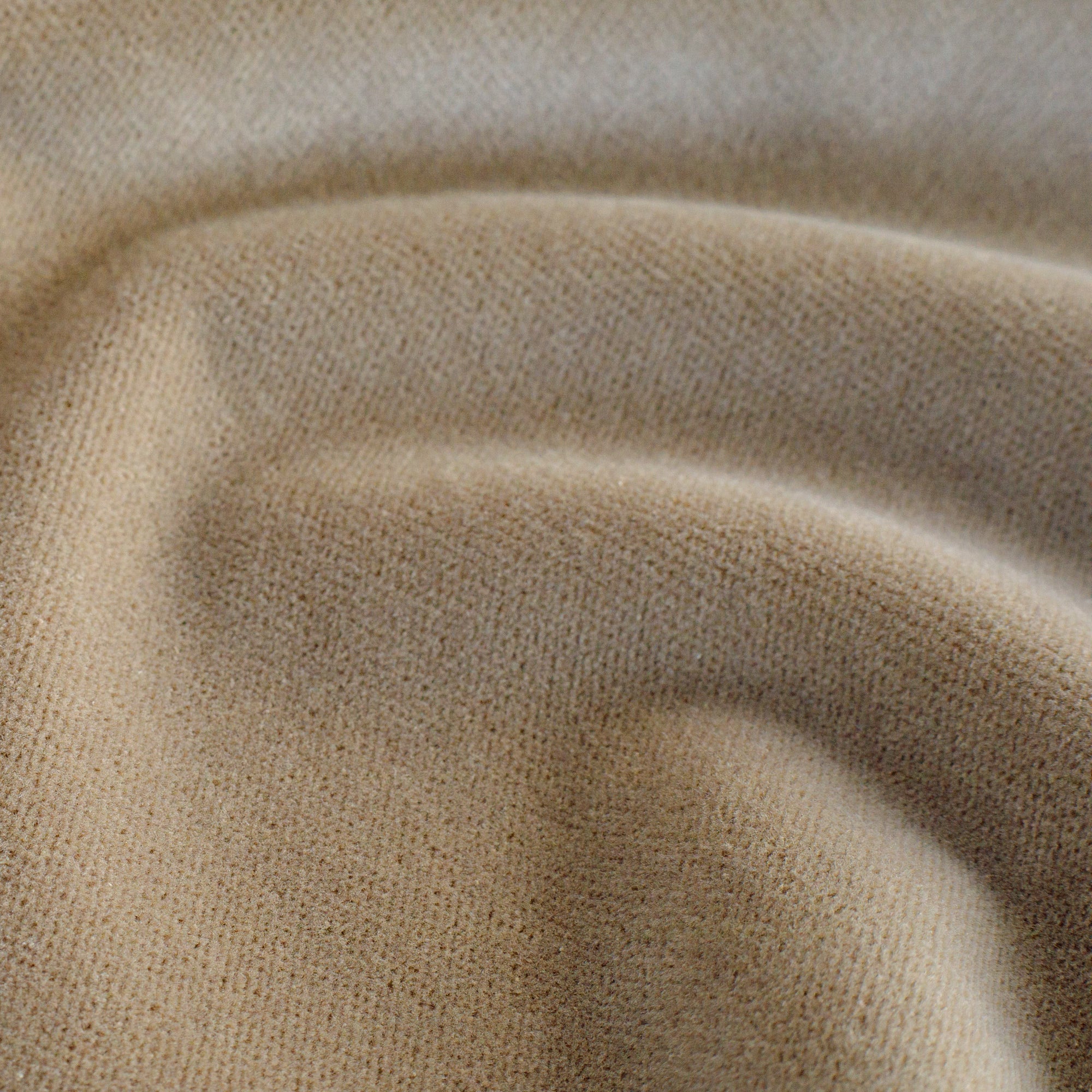 This warm, medium grey velvet with earthy undertones is luxuriously soft. The lustrous sheen and fluid quality will instantly add texture and richness to your space.