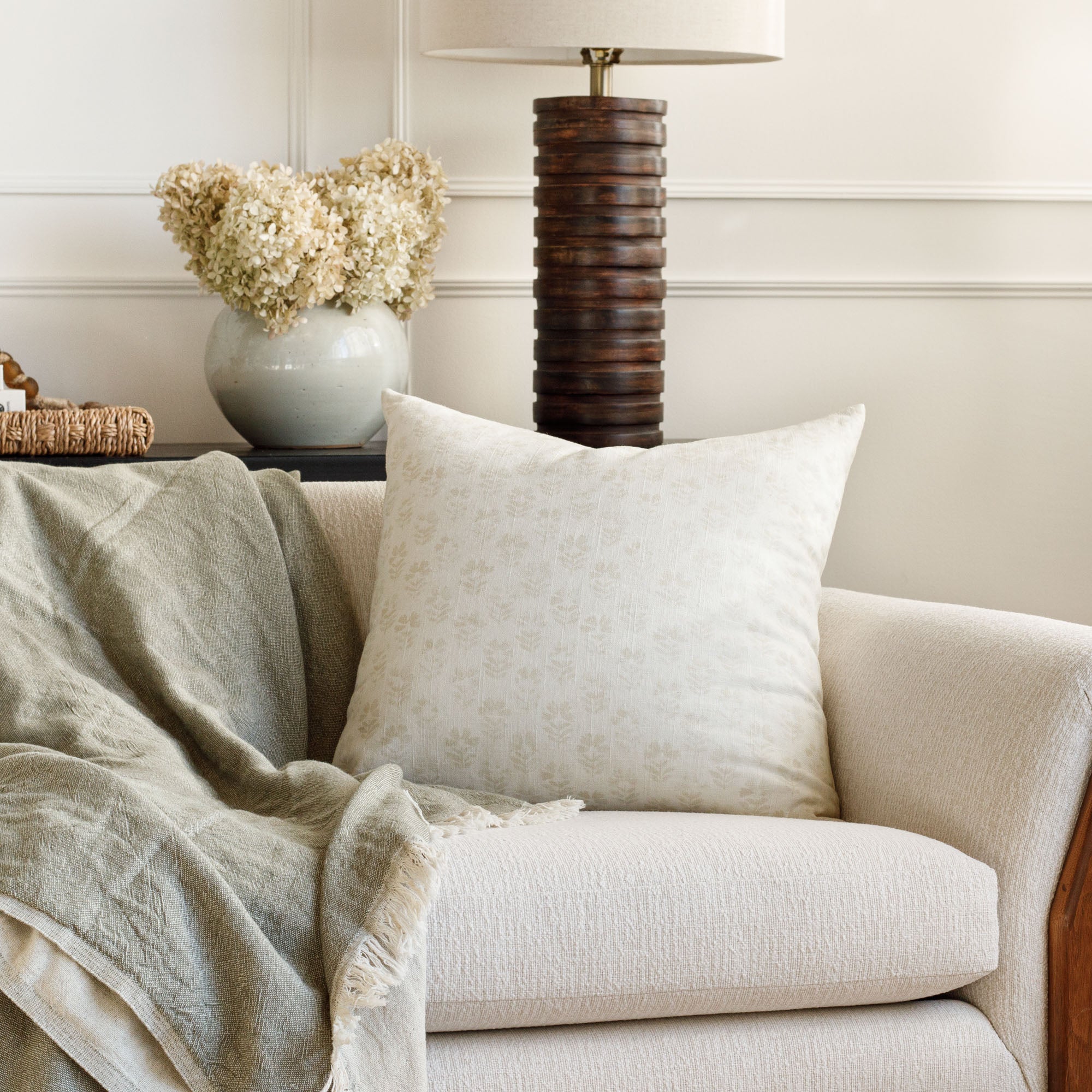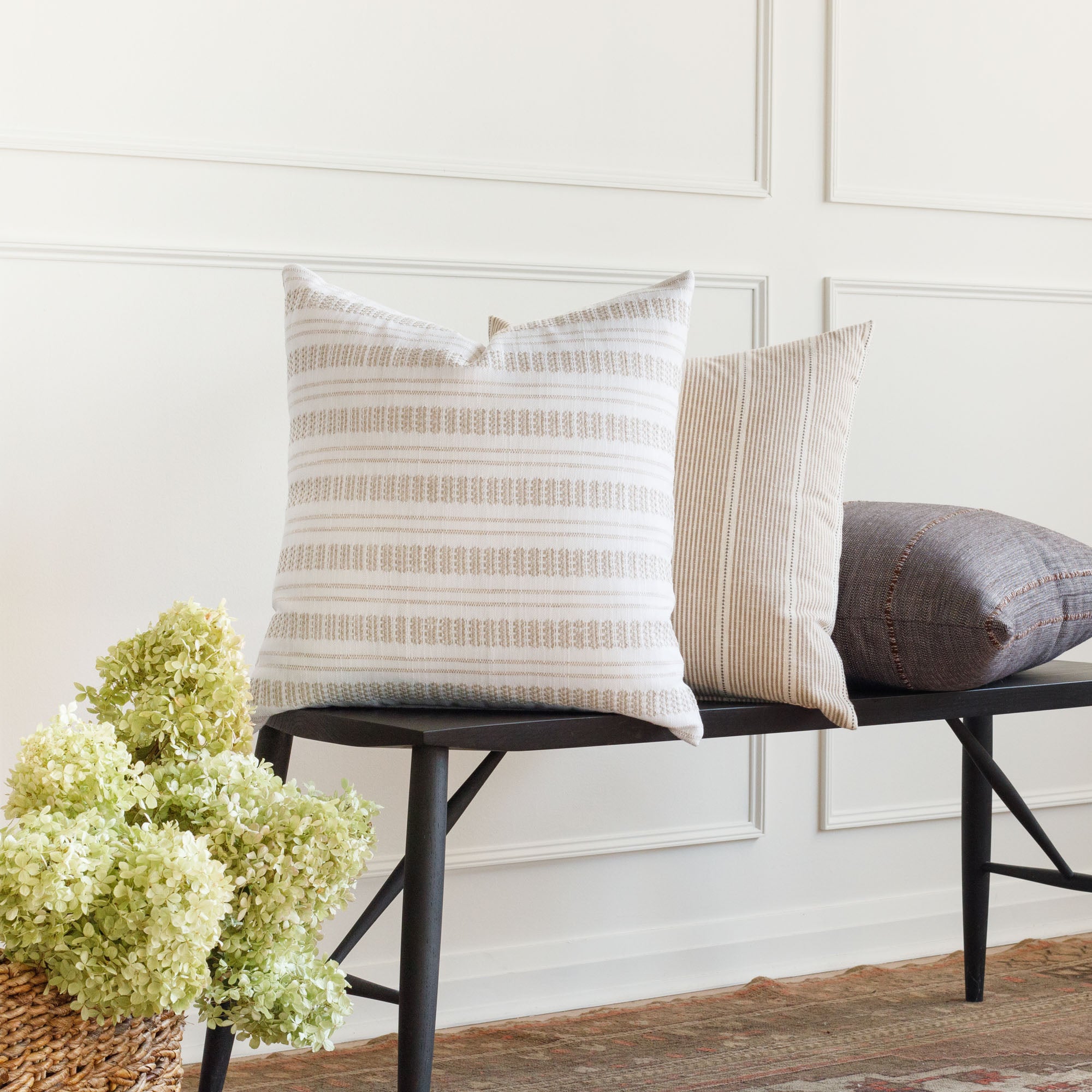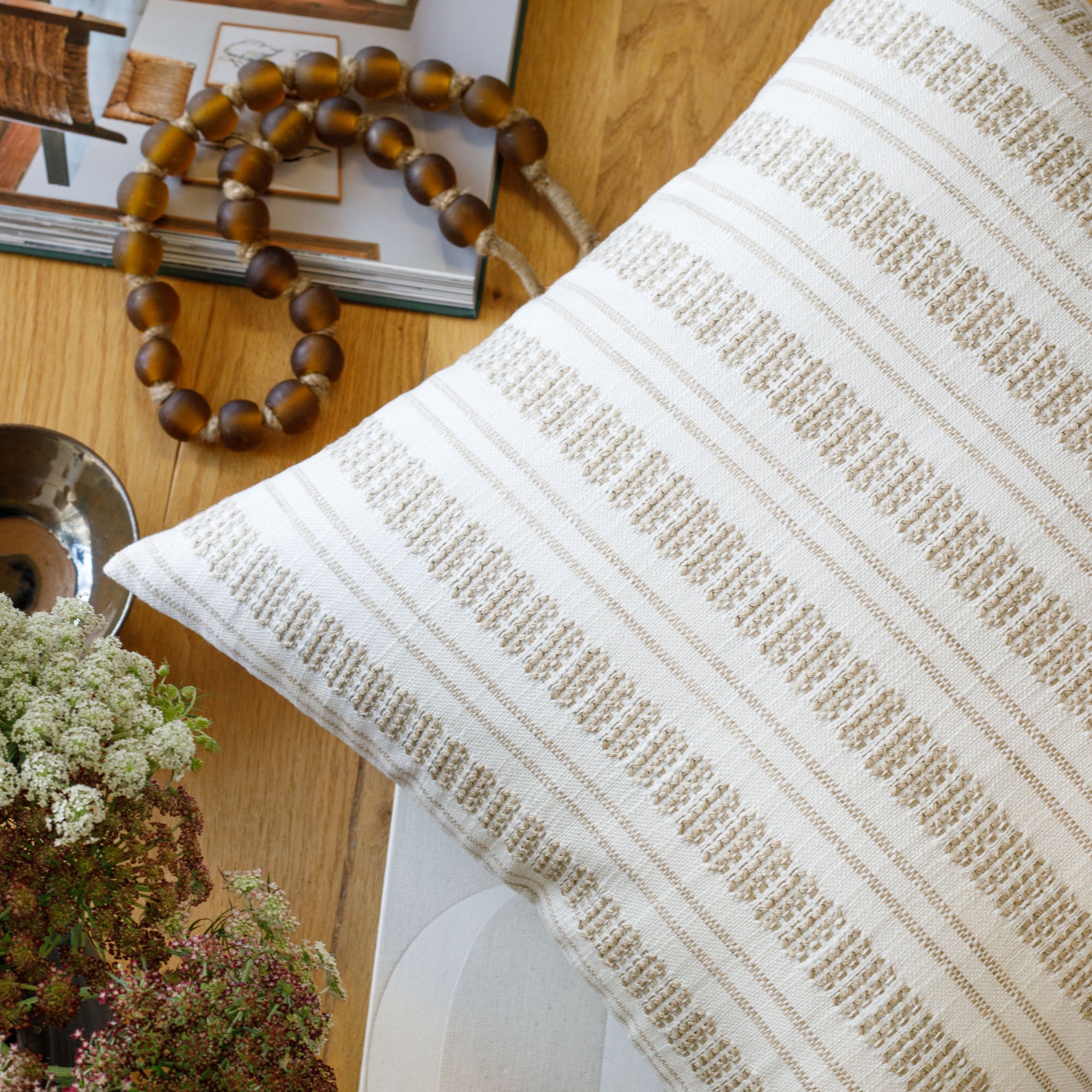 This casual striped pillow in a a dusty, sage-green and oatmeal colour palette is an instant classic. With a luxe-meets-earthy aesthetic and organic texture, this highly versatile and beautiful piece effortlessly delivers a coveted Belgian farmhouse style.