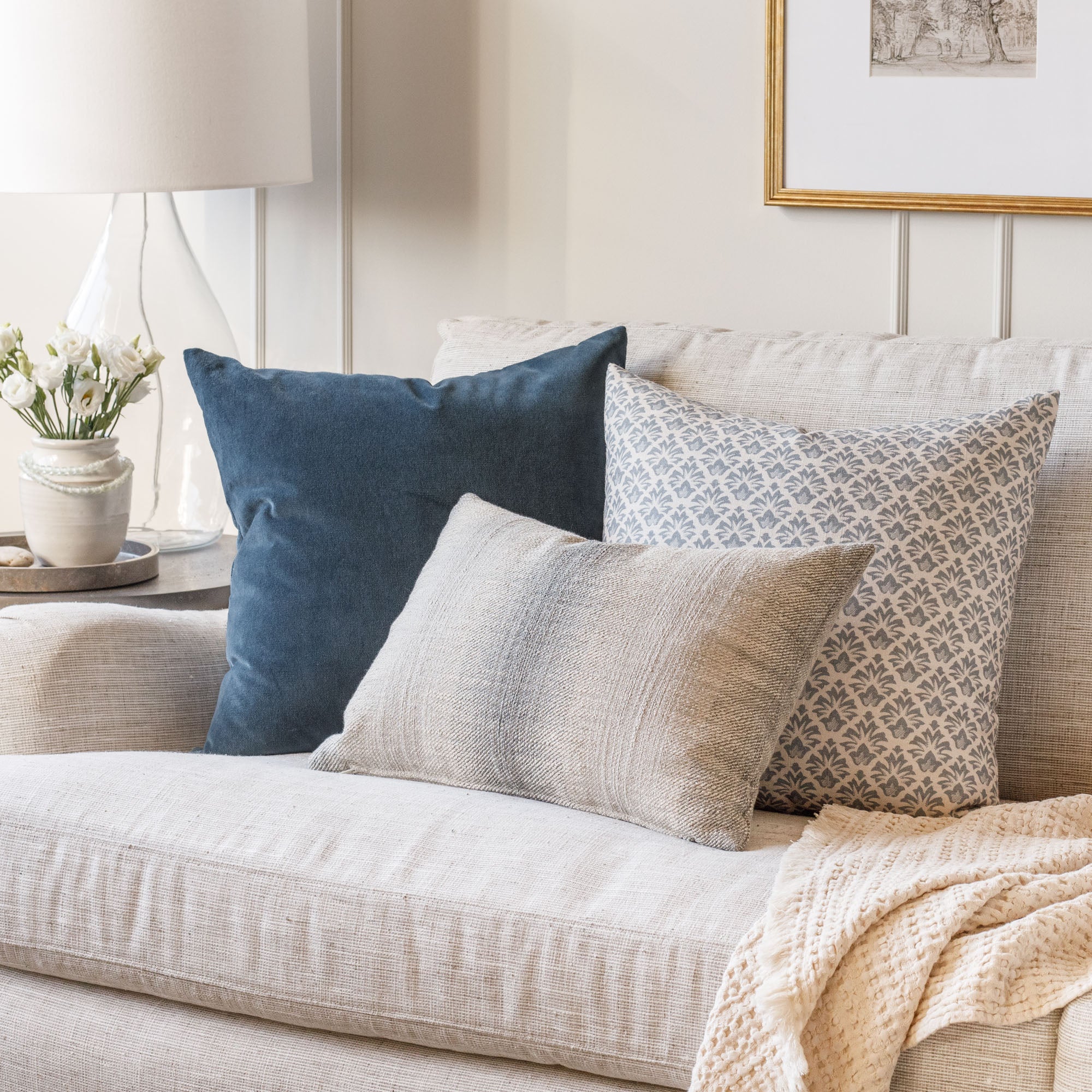 This muted, earthy blue velvet with faint teal undertones is luxuriously soft. The lustrous sheen and fluid quality will instantly add texture and richness to your space.
