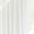 This soft white, semi-sheer drapery fabric has a delicate knit quality with a flowing texture that hangs beautifully. It’s a classic and ideal option for window treatments, offering a light filtering and a semi-private effect. Soho can be used alone as stunning sheers, or it can also be lined to enhance the light-blockage and privacy. The wide width of this fabric yardage lends itself perfectly to expansive windows and large patio doors.