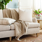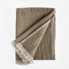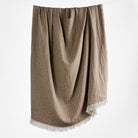 Curl up and get cozy with this earthy light brown and natural throw blanket. Crafted from a luxurious linen-cotton blend, this reversible, double-sided throw offers timeless appeal with its soft texture and perfectly balanced weight — light yet substantial. The delicate fringe detail and two-ply construction add to its understated elegance, making it a refined yet relaxed accent for any space. Whether draped over your sofa or wrapped around you on a chilly evening, this versatile throw brings a touch of organic warmth to your seasonal décor.