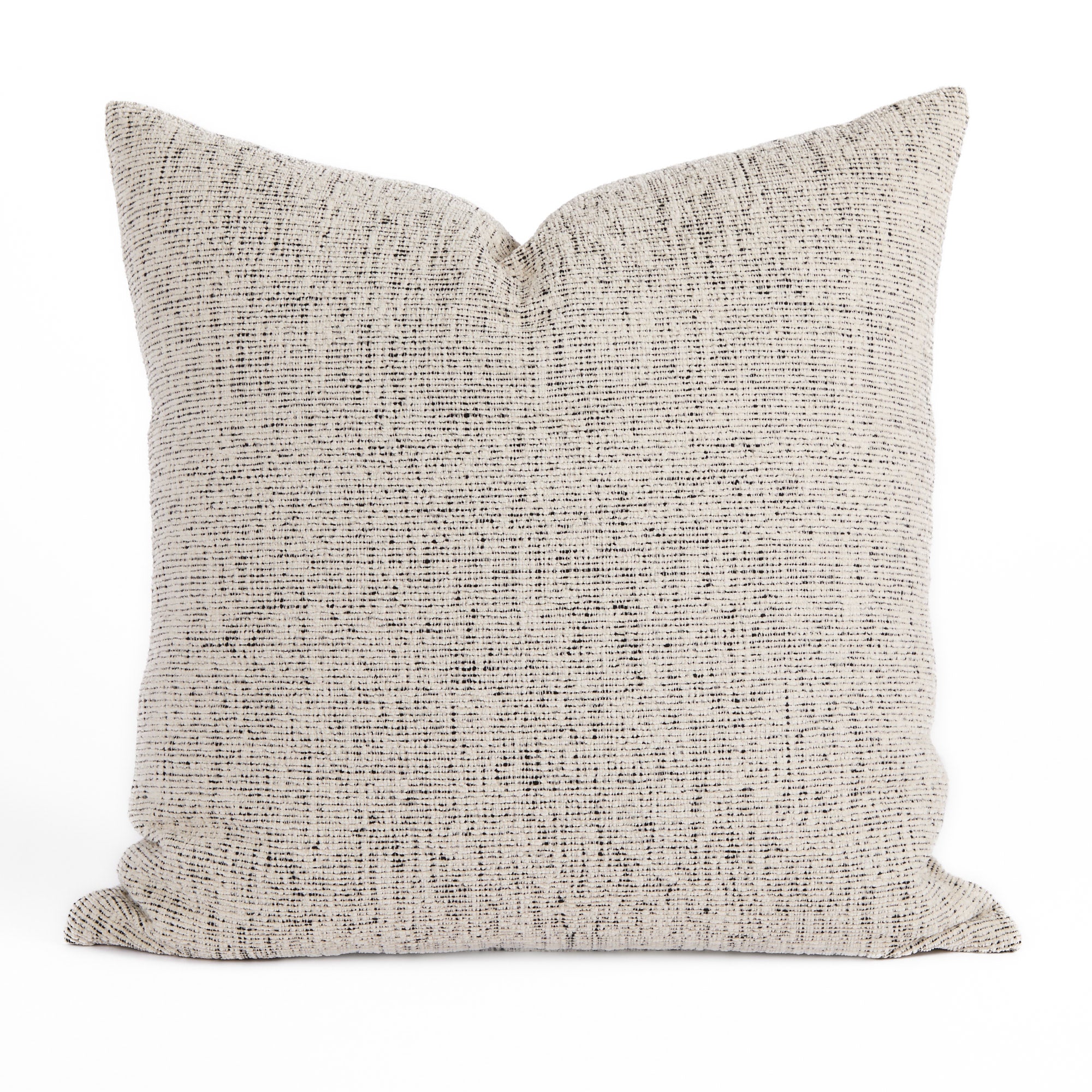 An off-white and black indoor-outdoor pillow with a subtle woven stripe that adds soft texture and dimension. A versatile and cozy foundational layer.