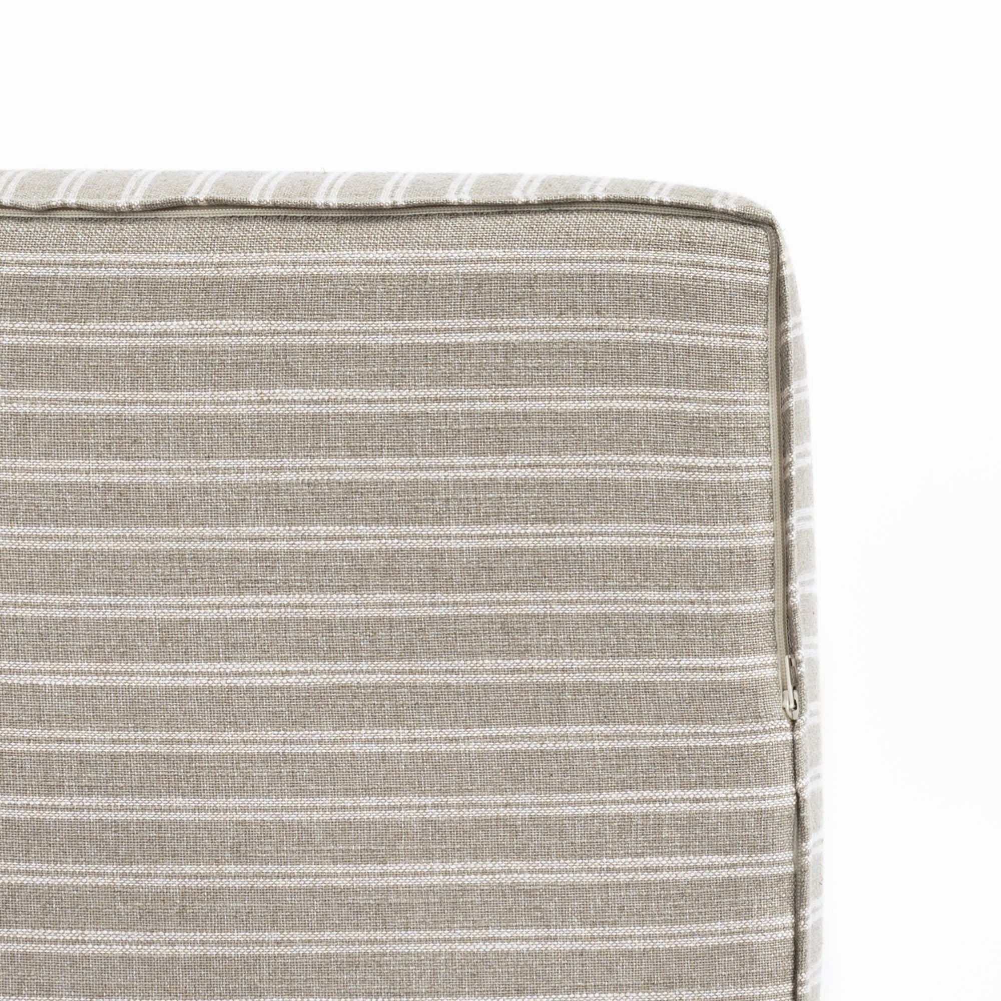 This classic cube ottoman features a simple stripe in an earthy and versatile colour palette of dusty sage and oatmeal. With a refined rustic aesthetic and organic linen-like texture, this beautiful piece delivers an effortless Belgian farmhouse style.