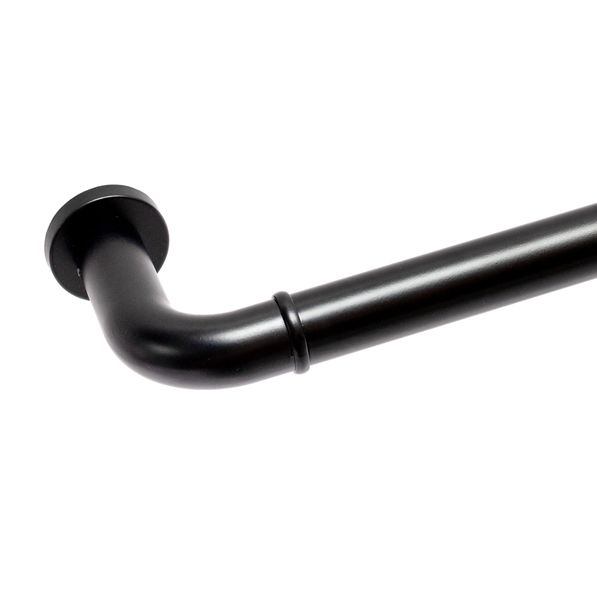 This is a sturdy, metal drapery rod that measures 120" long with a 1 1/8" diameter. The ends are capped and ready for finials to be added (sold separately). It can be cut easily with a small utility saw or pipe cutter.
