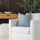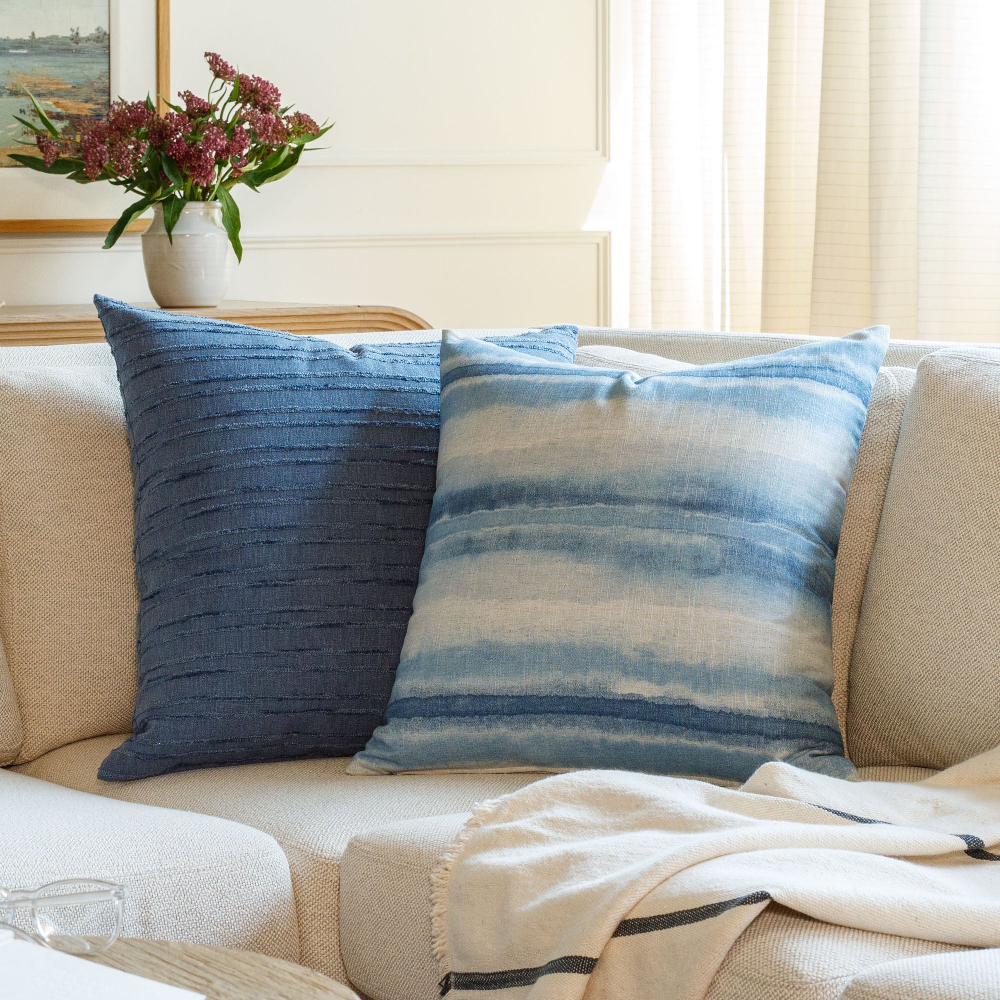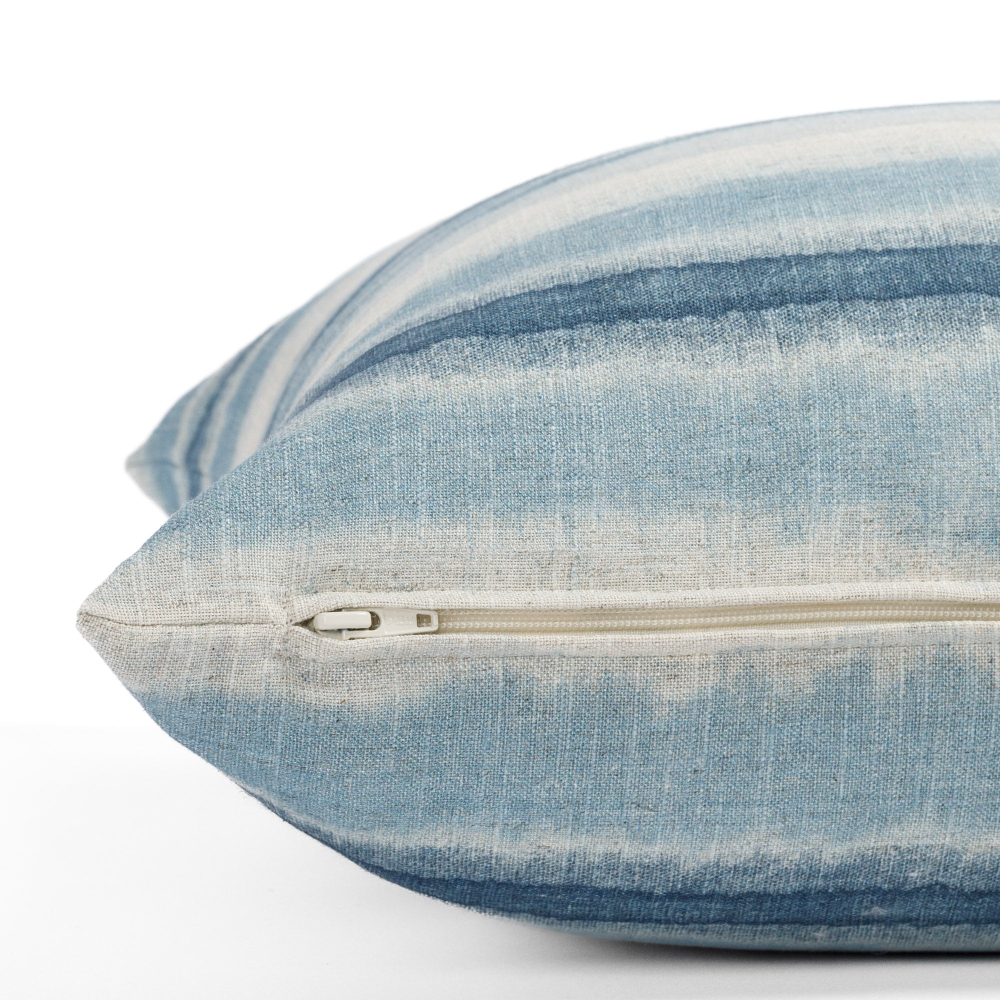 You can't go wrong with this chambray blue pillow. With a tonal, textured stripe in a variety of beautiful blues and accents of white, layering this piece into your pillow mix will bring the function of a foundational solid, with the added interest of a subtle pattern.