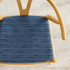 This navy blue fabric has a textured bouclé stripe and a laid-back feel.