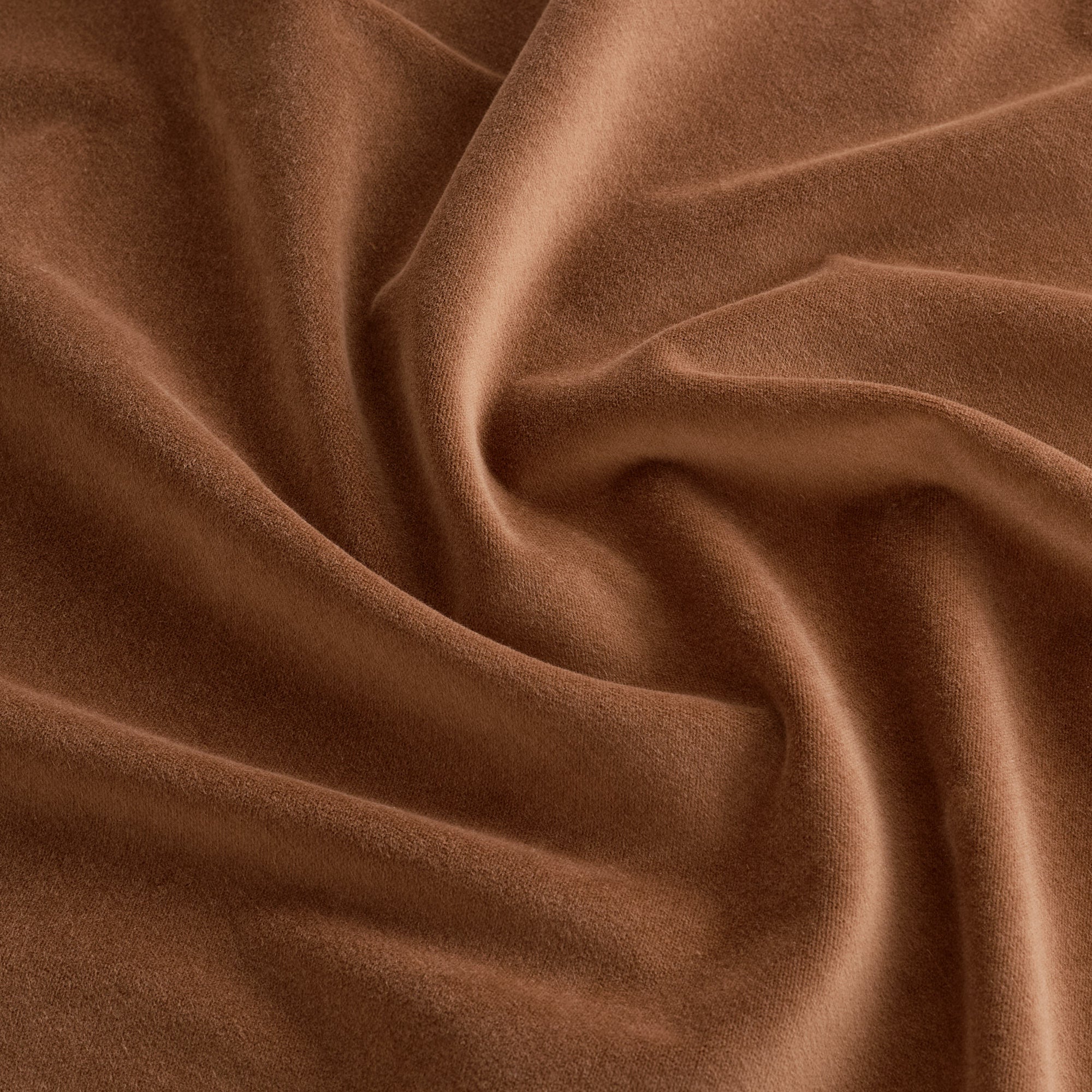 This rich, rusted cognac velvet with earthy undertones is luxuriously soft. The lustrous sheen and fluid quality will instantly add texture and richness to your space.