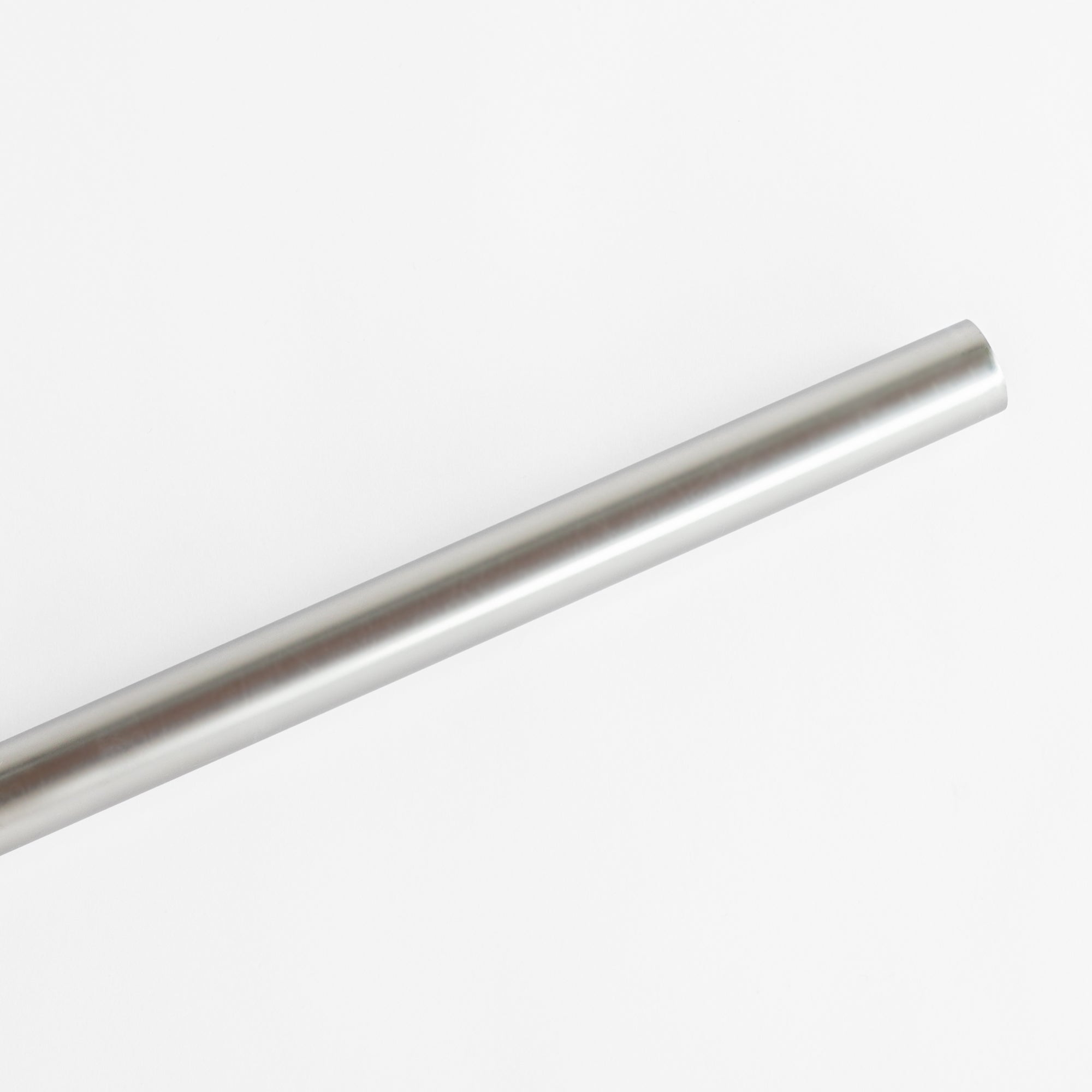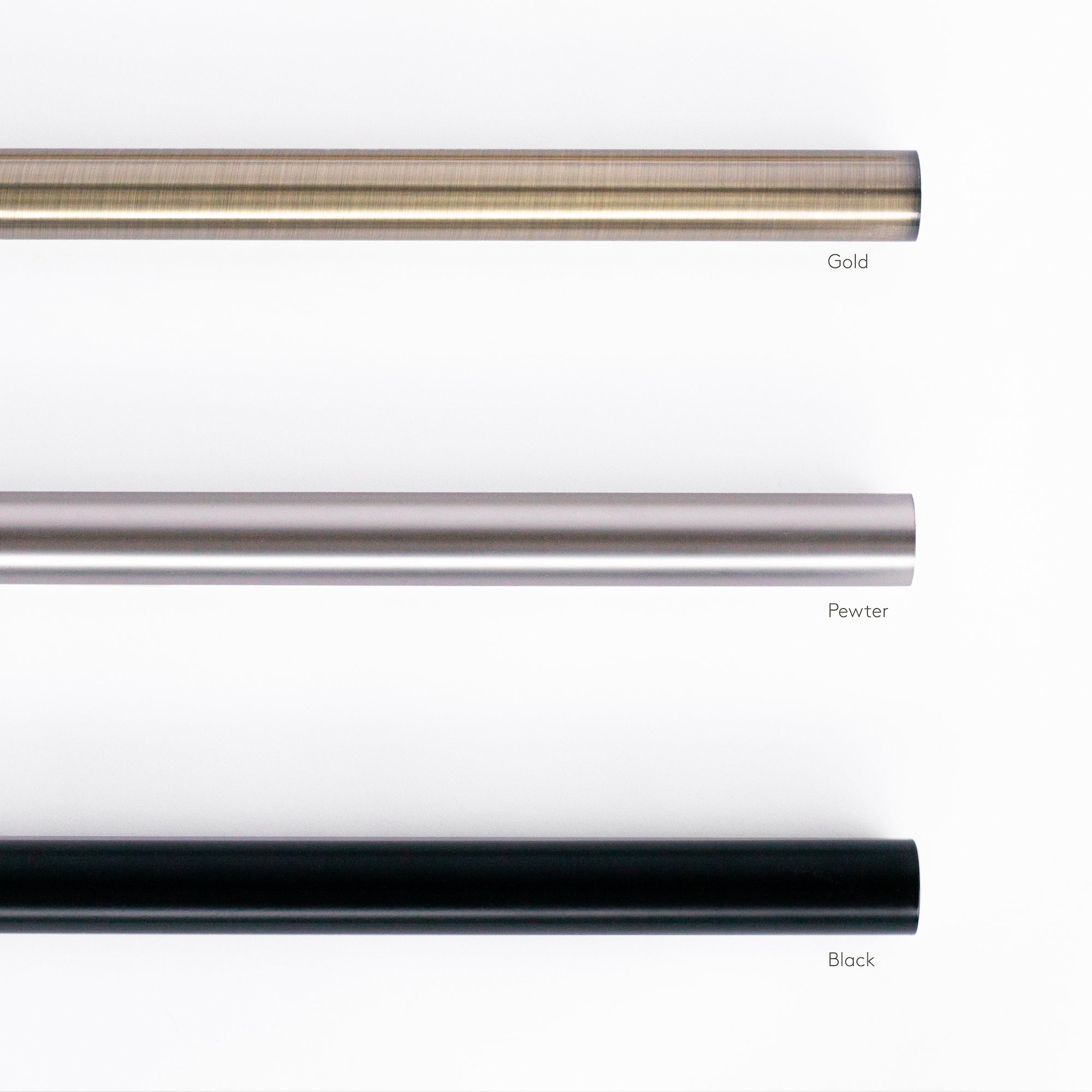 This is a sturdy, metal drapery rod that measures 120" long with a 1 1/8" diameter. The ends are capped and ready for finials to be added (sold separately). It can be cut easily with a small utility saw or pipe cutter.